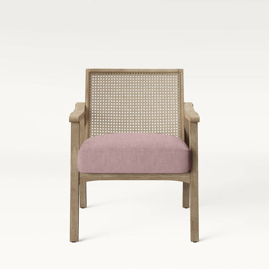 Tranquebar Colonial Style Accent Chair, Rattan Weave, Rustic White Finish with Luxury Caramel Seats