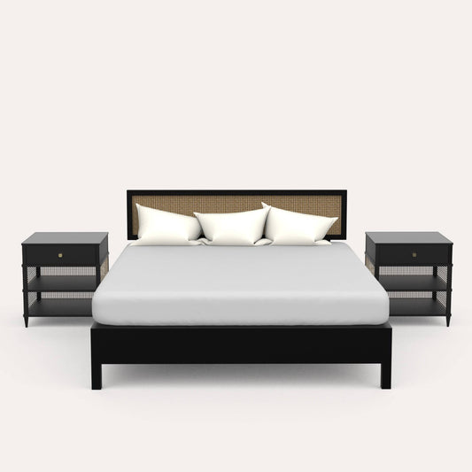 California Black Rattan Bed - Mango Wood
