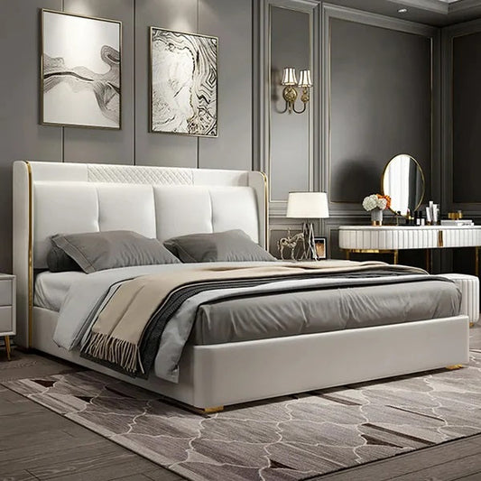 Frosted Luxury Upholstered Bed Without Storage In Leatherette