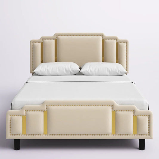 Crown Upholstered Bed Without Storage In Towel Suede Fabric
