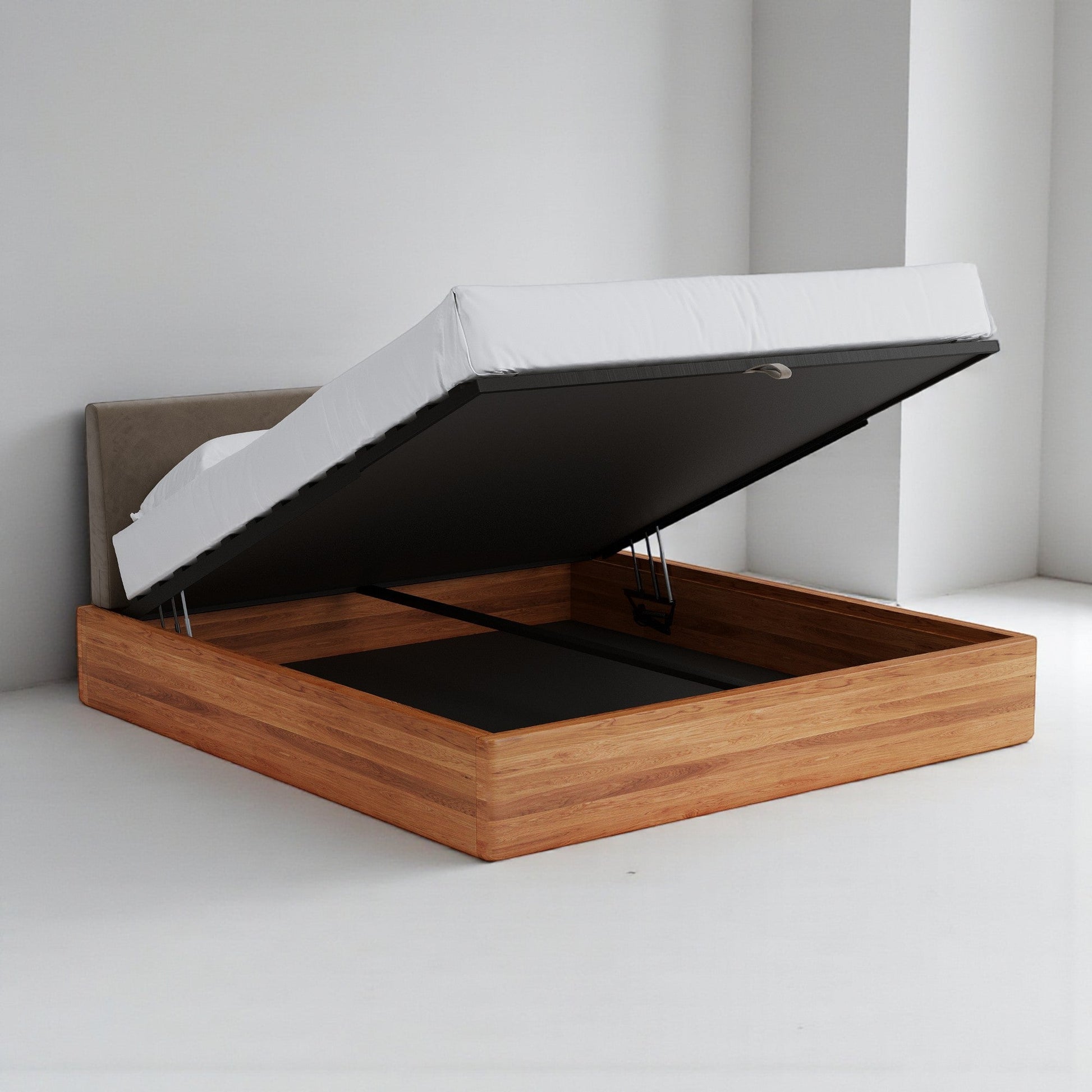 Aari Bed (Built-in Storage) - Solid Teak/Walnut/Oak Wood (King)
