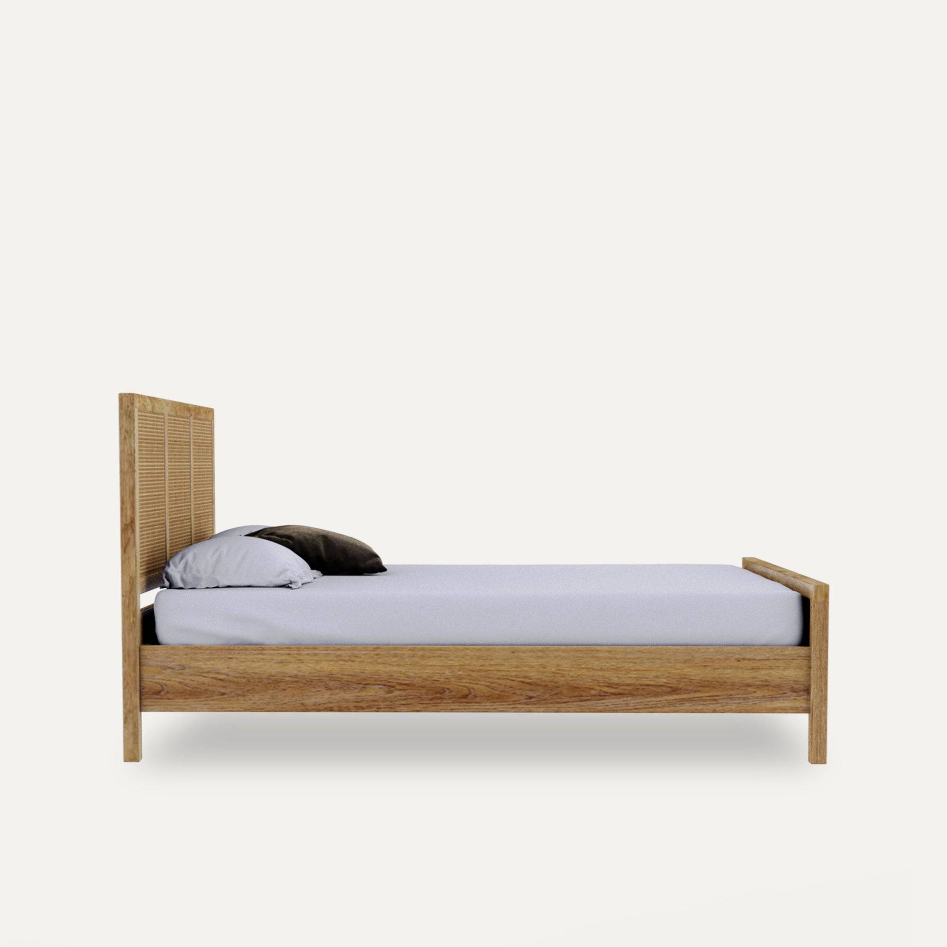 Bring timeless charm to your bedroom with the Adelaide Rattan Bed. Crafted from mango wood with cane weaving, it blends Scandinavian, modern, and midcentury designs.