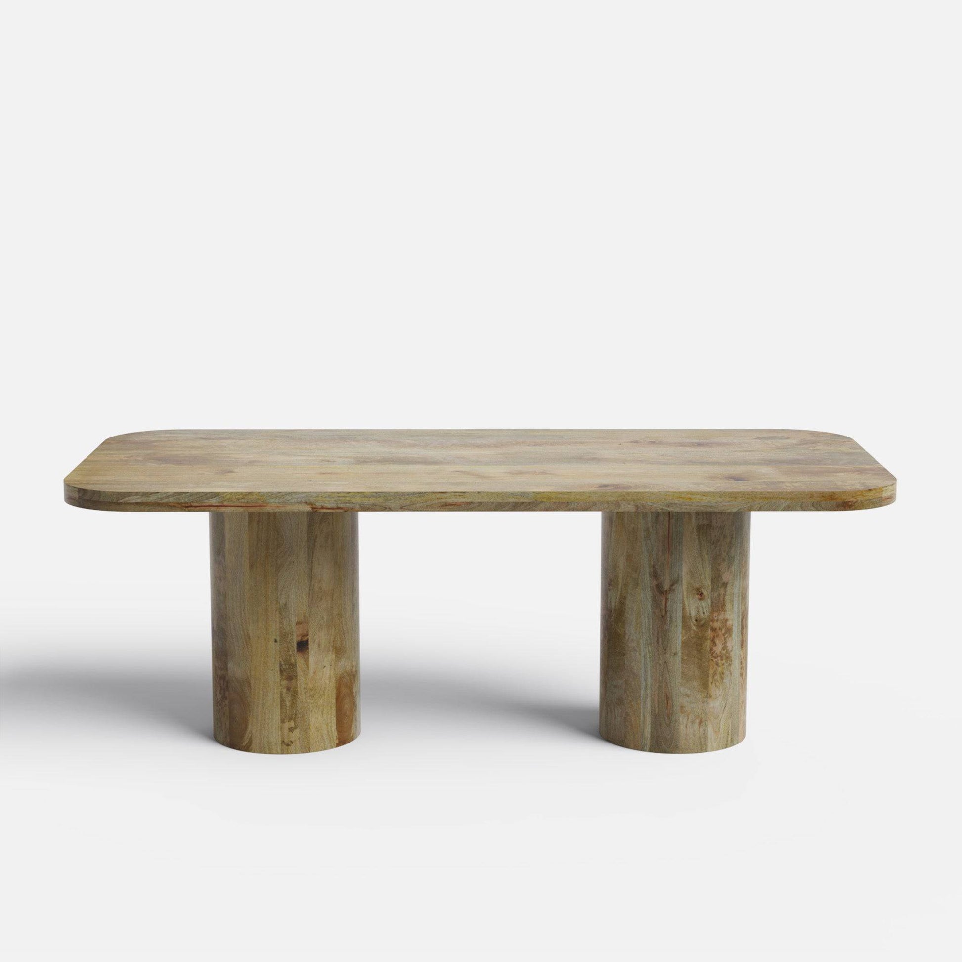 Introducing the "Alba Luxury Dining Table," a stunning centrepiece for your dining room. Crafted with meticulous attention to detail, it features a flat top with rounded edges and round legs, exuding timeless elegance. Handcrafted from mango wood, it boasts a natural polish that enhances its beauty and durability. Available in 6 and 8-seater sizes, this table offers versatility and functionality for both intimate gatherings and larger events.