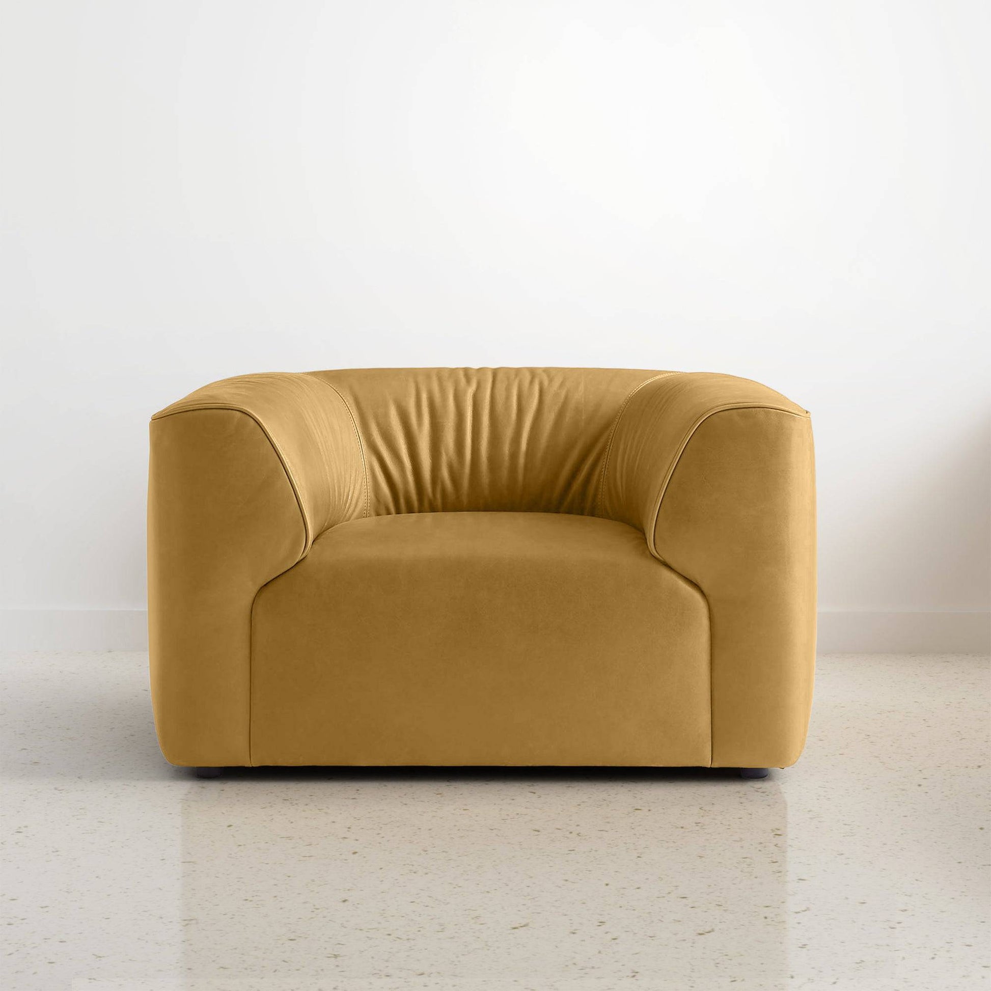 - Vibrant Mustard Vegan Leather upholstery adds a pop of colour