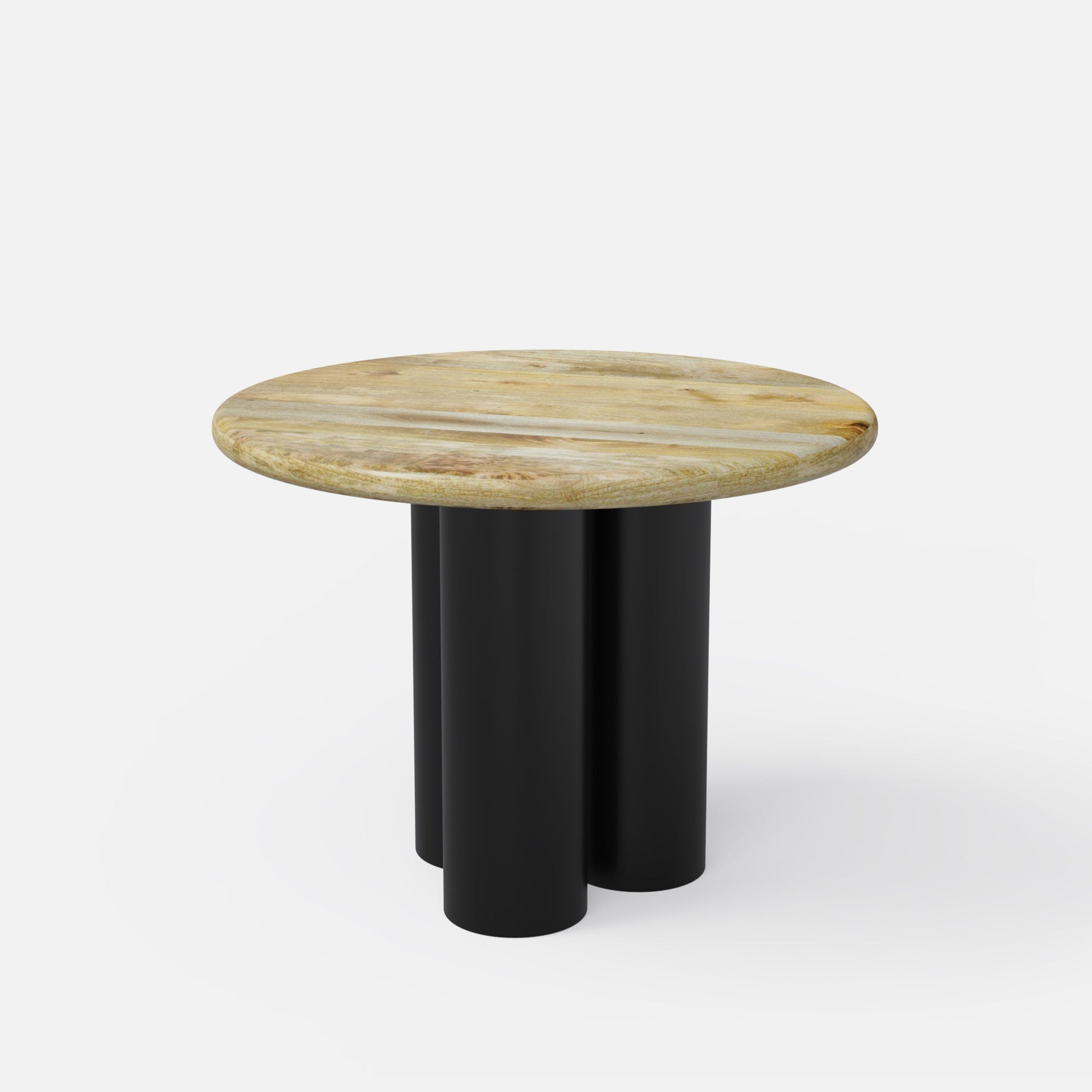Round table with multi-finish design and triangular pedestal base