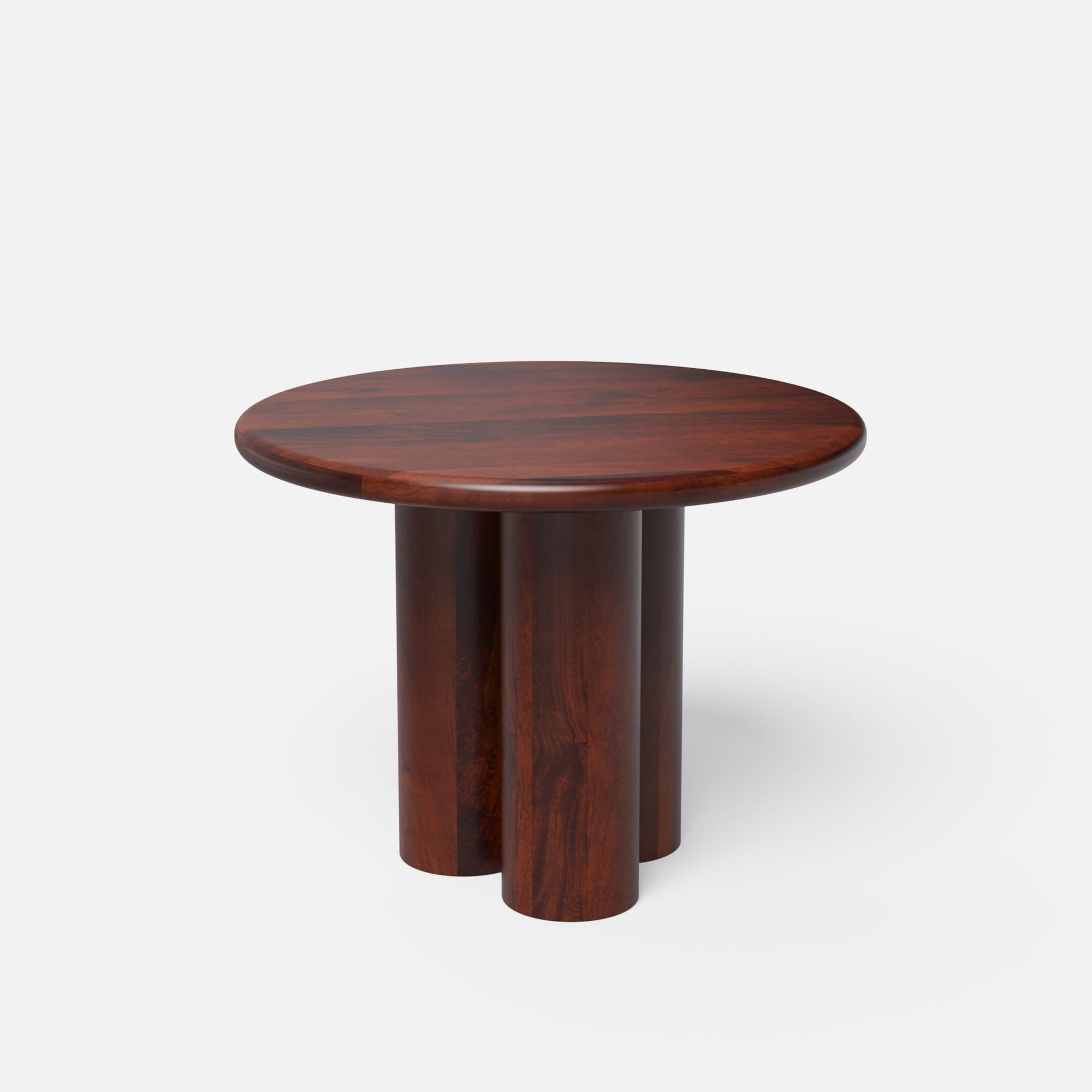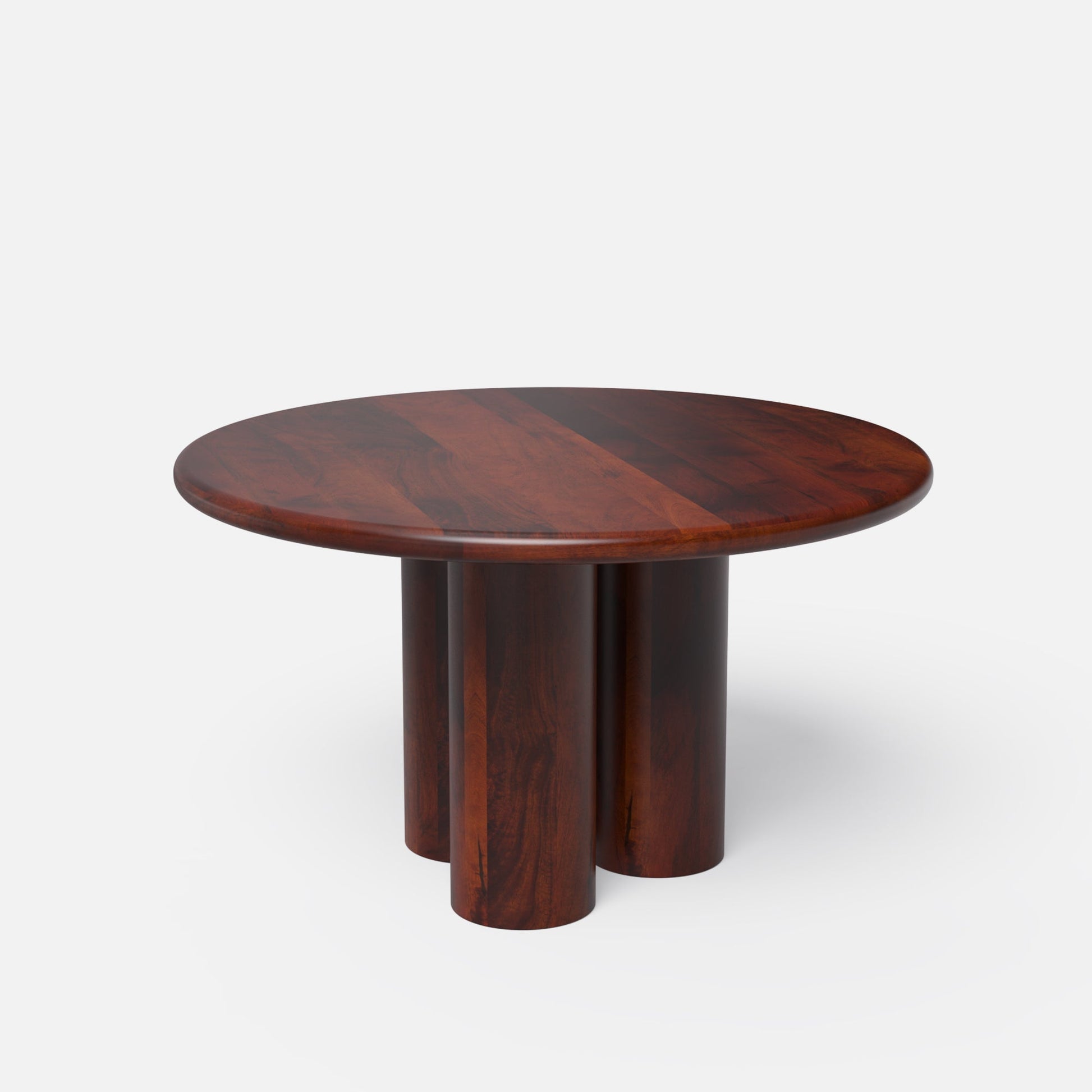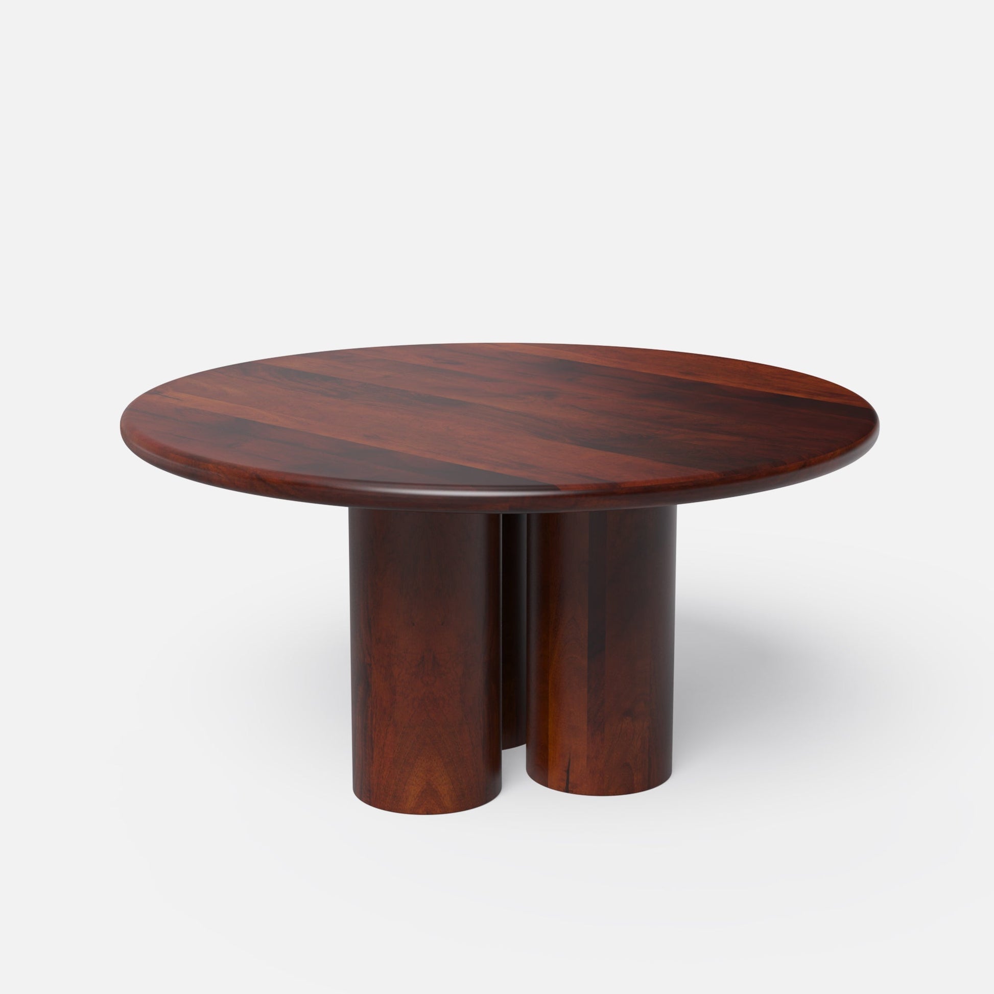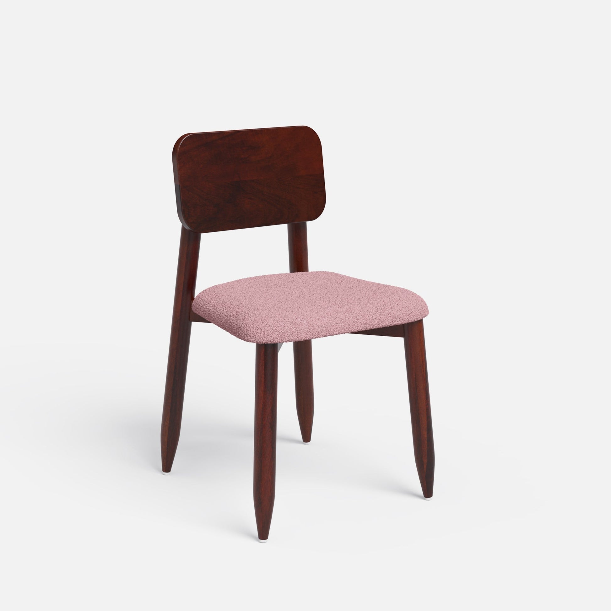 Introducing the "Amor-Stig Upholstered Dining Table Set - 2, 4 & 6 Seater/All Sizes," a blend of modern elegance and comfort. The Amor Table boasts a round top with a triangular pedestal leg in mango wood, finished in Provincial Teak. Complementing it is the Stig Upholstered Chair, featuring a sleek armless design and comfortable seating. Crafted from Sheesham wood with the same Provincial Teak finish, the chairs are upholstered in luxurious Rose Gold Boucle Fabric.