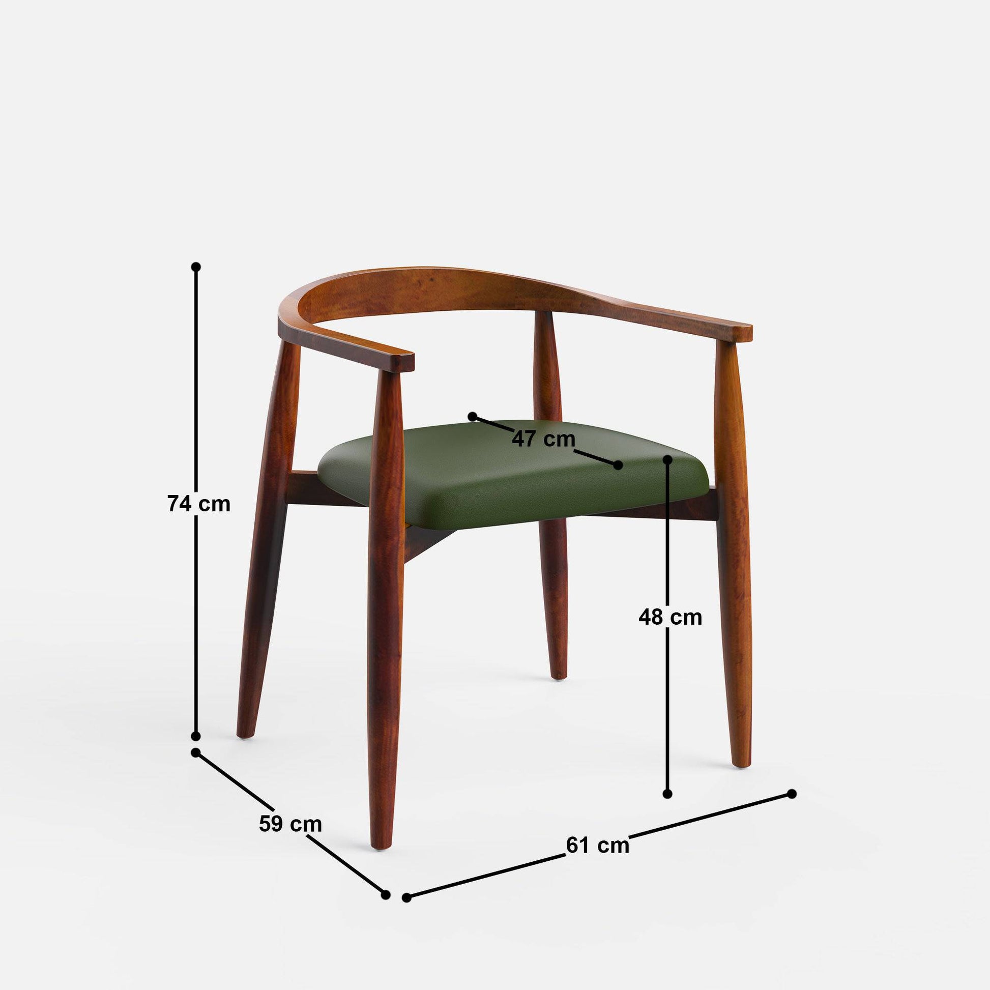 - Millie chairs inspired by Hans J Wegner's iconic round chair design with forest green leatherette seats