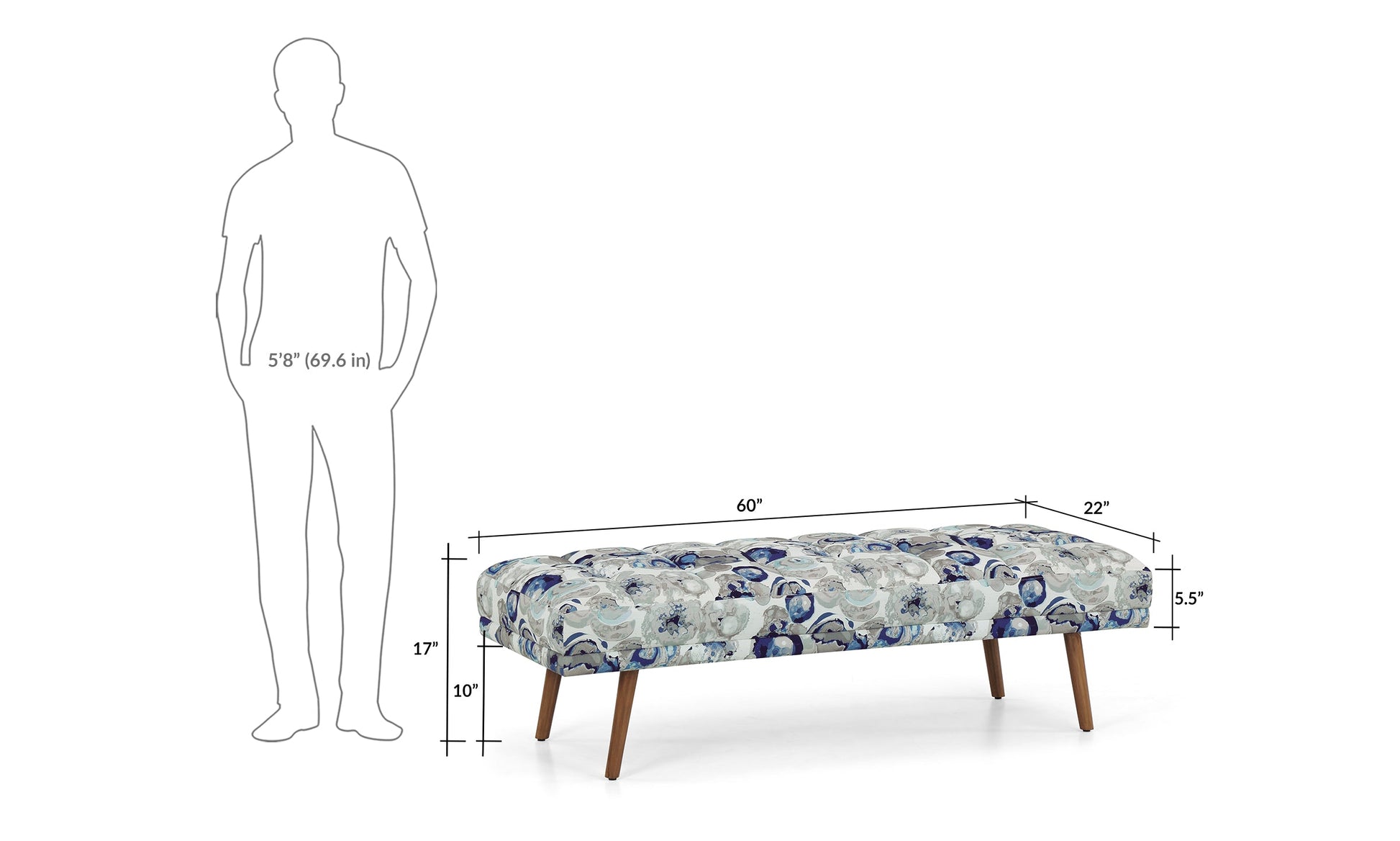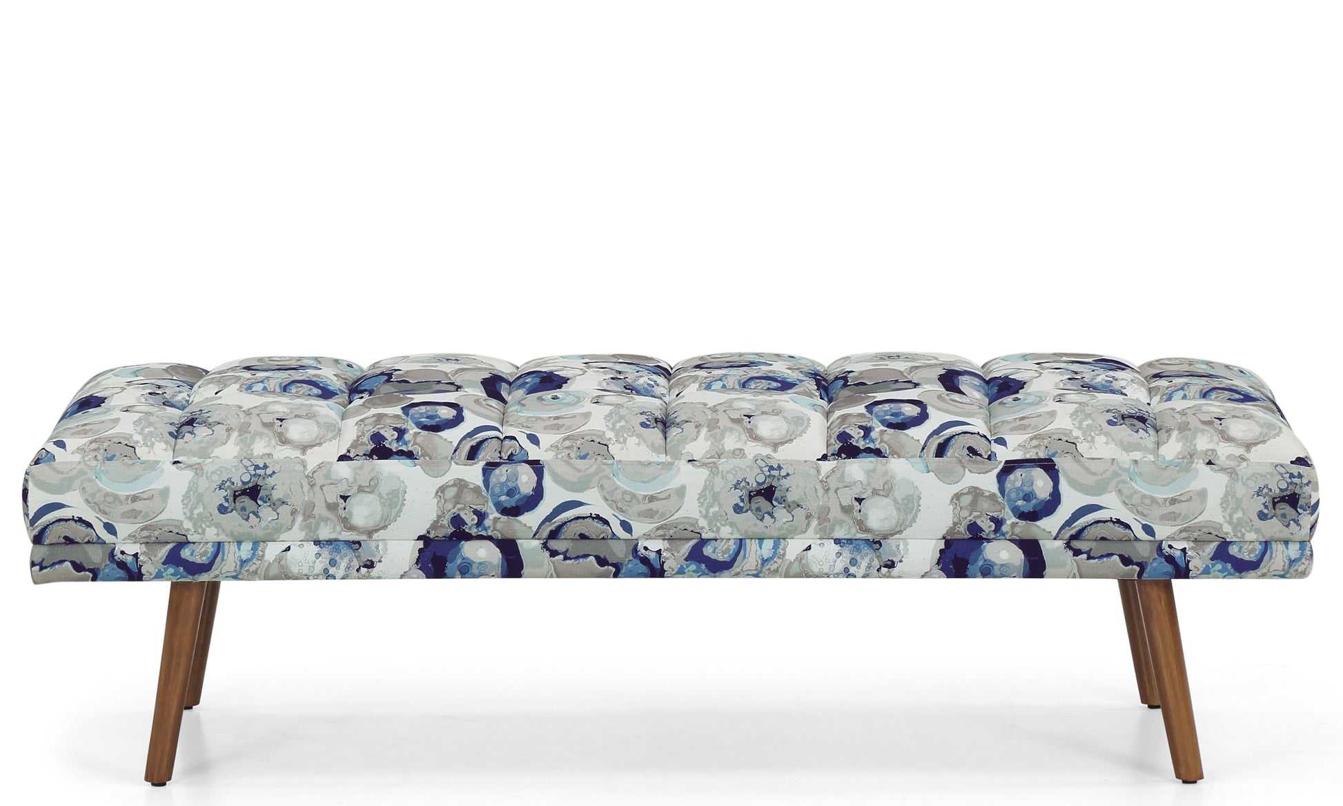 Echoing a minimalistic vibe, the Athens bench with its linear form offers stylish seating. The slim, splayed legs along with the tufted cushion contribute to its sleek and modern silhouette.