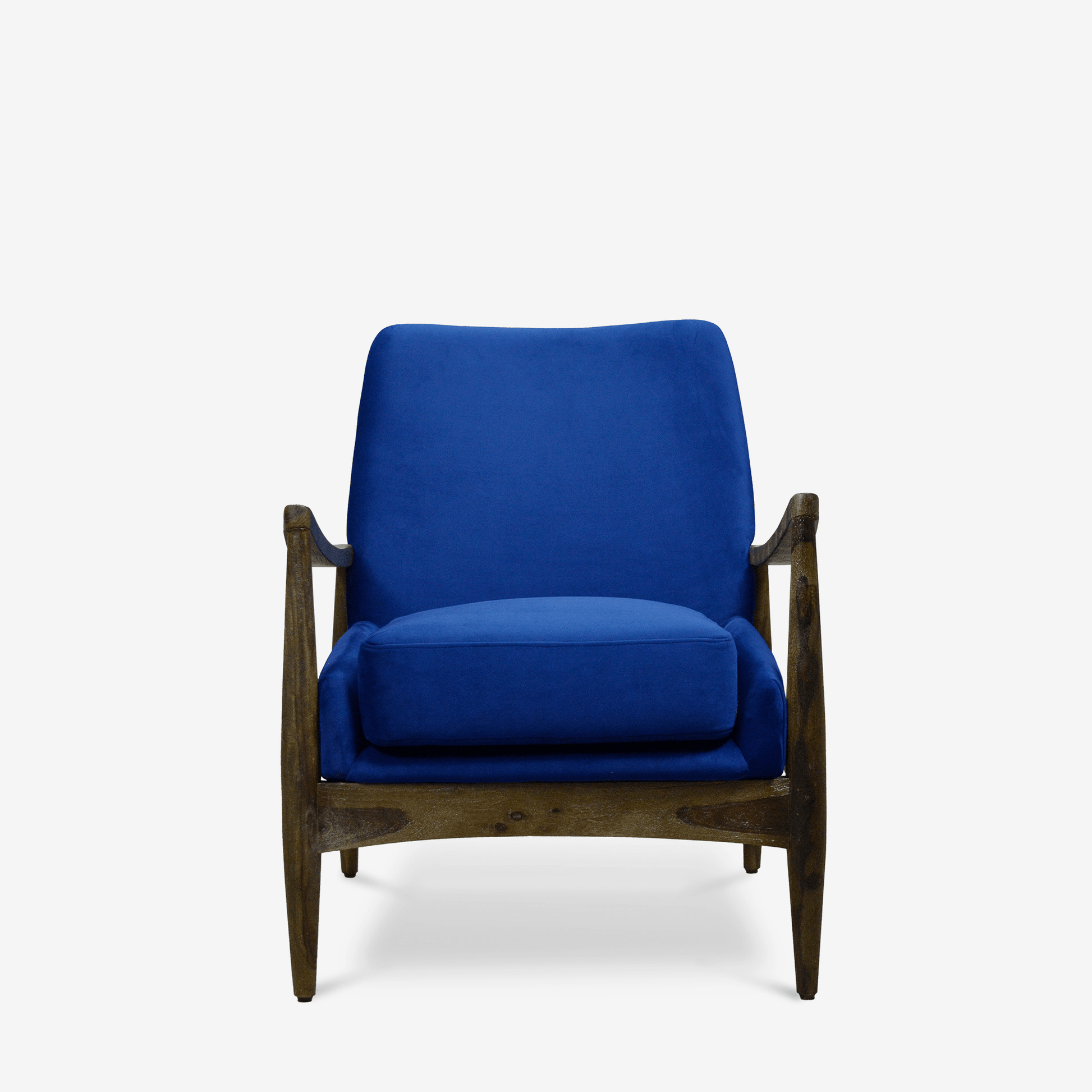 Introducing the Baden Accent Chair: a masterpiece of sleek and contemporary design that seamlessly blends sophistication with comfort. Its dramatic arms and deep seat beckon you to unwind in mid-century modern style. The sculpted Sheesham wood frame, elegantly finished in walnut, adds a touch of luxury. Upholstered in premium-quality soft velvet fabric in a deep ocean blue hue, the Baden is a statement lounging piece that will transform any space.