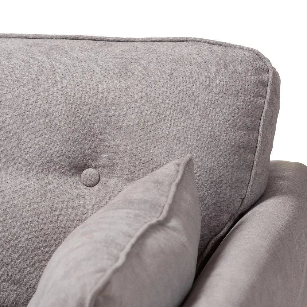 This stylish sofa brings a vintage spin to any living area, combining the retro wide and symmetrical forms with up-to-date comfort and materials. Placed on solid wood legs, it features deep seating surface, thick back cushions and broad armrests. Team up with mid-century furniture and accessories for a complete look.