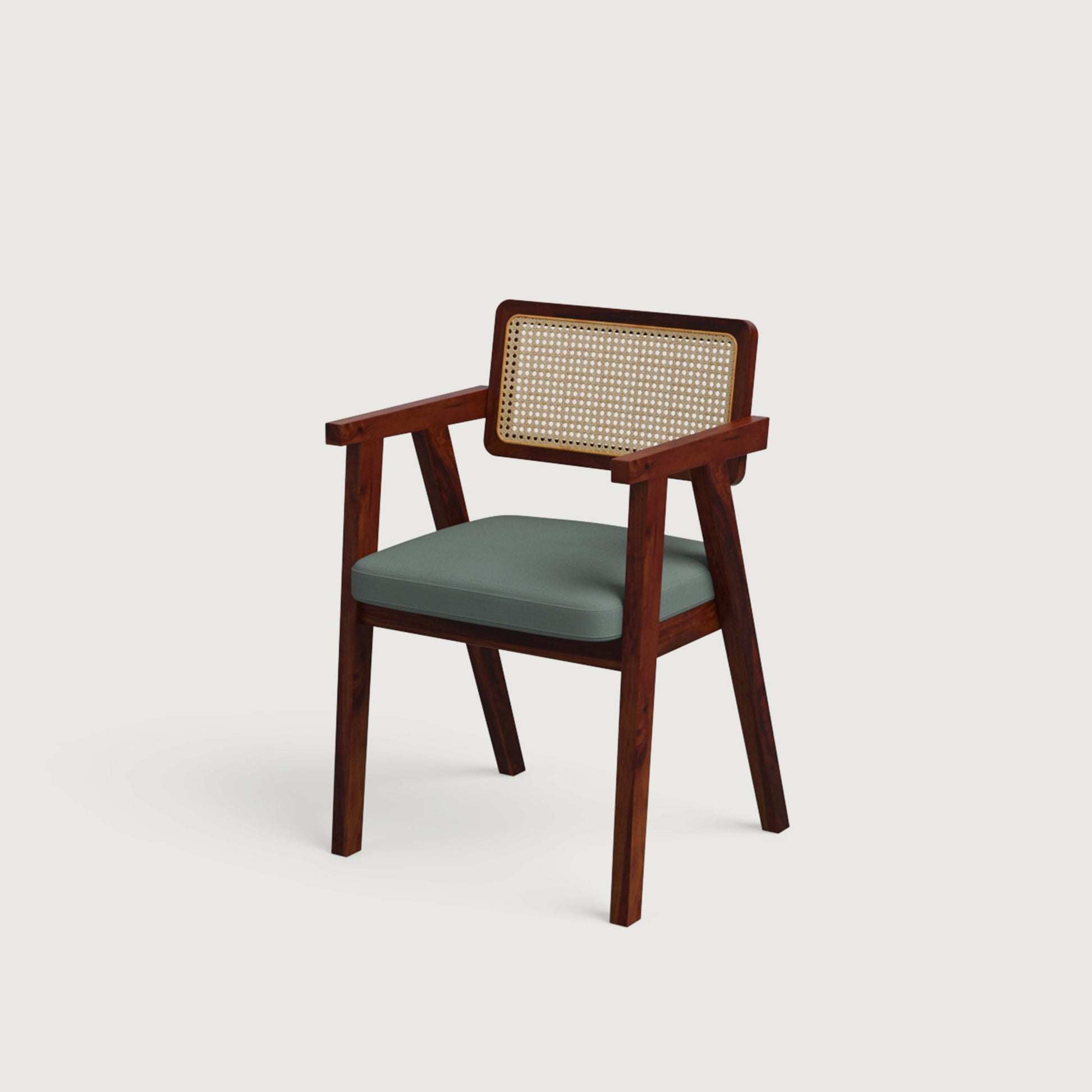 Introducing the Bob Rattan Chair, a testament to the exceptional built quality and captivating design. Inspired by Pierre Jeanneret, this dining chair exudes timeless elegance. Crafted from solid Sheesham wood with a vibrant Mahogany finish, it guarantees durability and style. The seat is adorned with Cotton fabric in Slate Grey colour, ensuring luxurious comfort. The standout feature is the stunning rattan weave on the backrest, adding a touch of natural beauty.