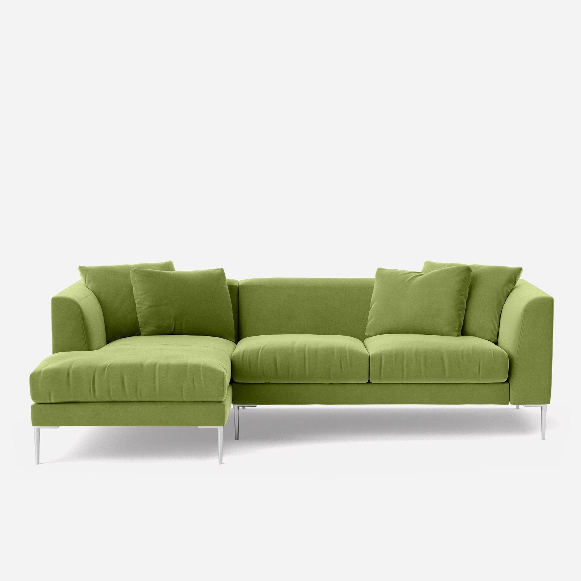 Introducing the Brian L-Shaped Sofa, where comfort meets contemporary elegance. Sink into its bouncy, sink-into seat cushions and enjoy the support of its broad, curved arms. The chrome-finished metal legs perfectly complement the salmon red soft velvet fabric upholstery, adding a touch of sophistication. Brian isn't just a sofa; it's a statement piece that combines style and relaxation, making it the perfect addition to your living space.