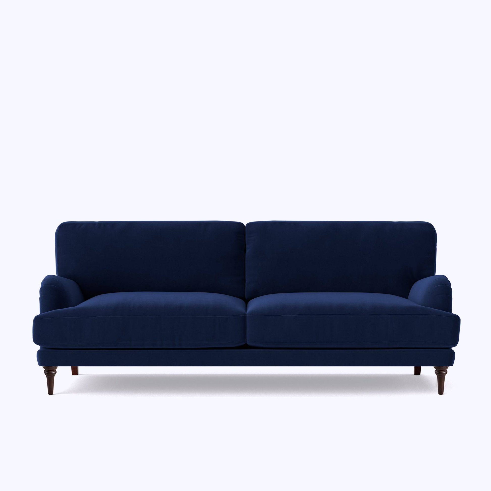 Introducing the Carlbury Three-Seater Sofa, a timeless and elegantly classic English roll-arm sofa that exudes sophistication. Adorned with pleating on the arms and beautifully turned legs, it boasts fluffy cushions that invite you to sink right in. The crisp and slender base strikes the perfect balance between comfort and refinement, making the Carlbury the epitome of style and relaxation. Choose from a diverse range of colours and fabrics to seamlessly match any living space.