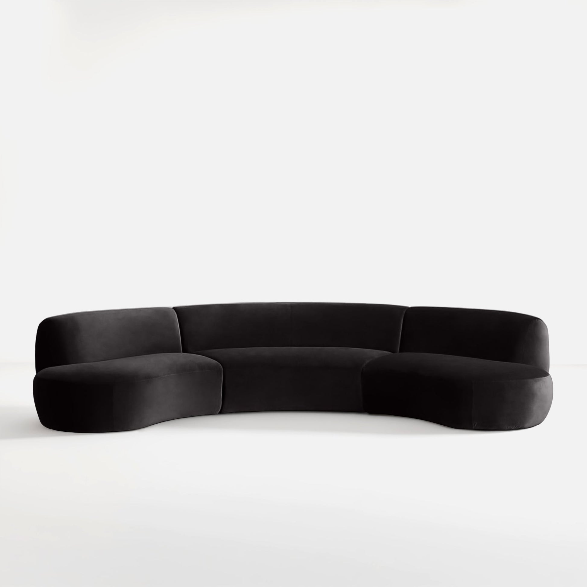 Curvy, spacious sectional design with a soft, bulky aesthetic