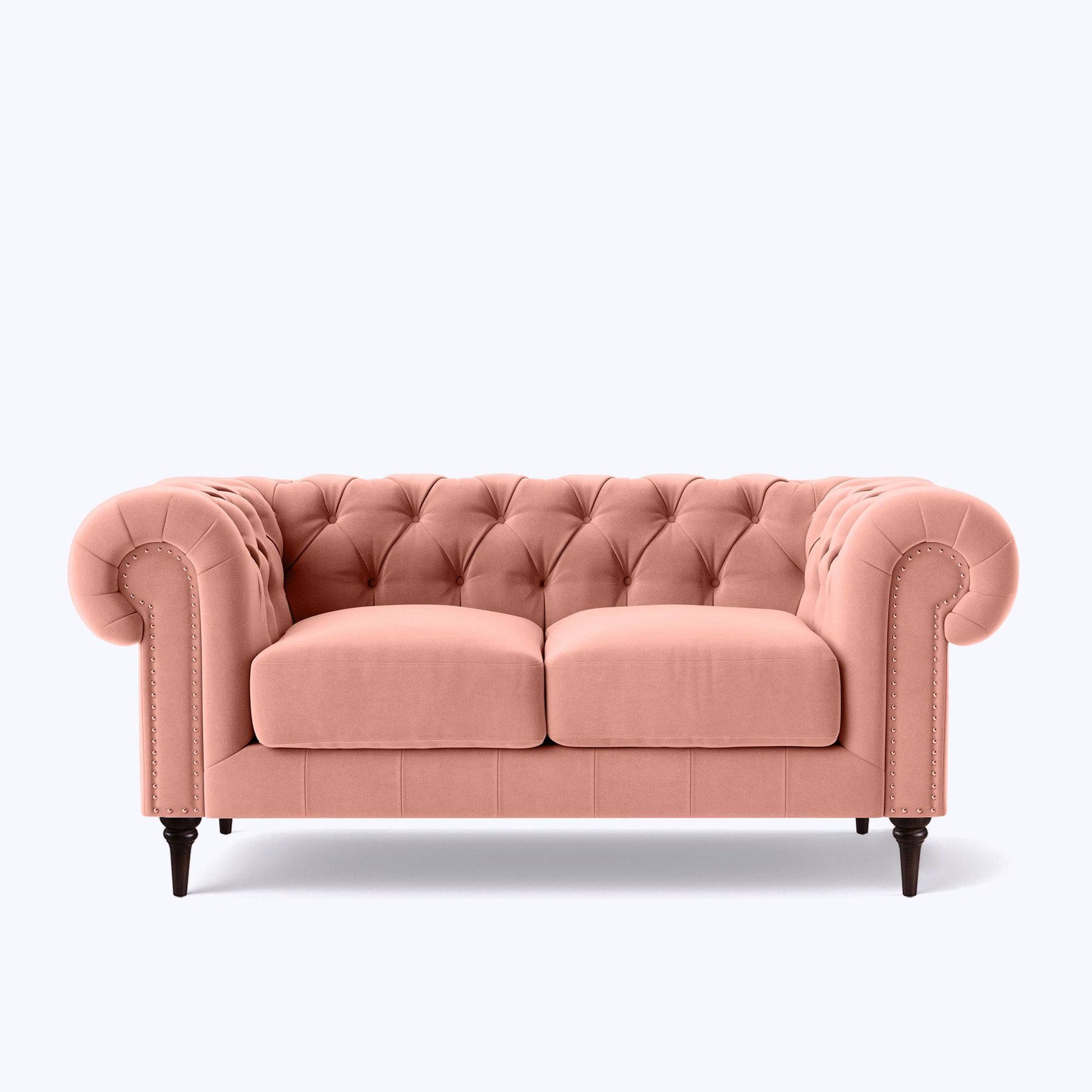 Introducing the Chesterfield 2 Seater Sofa, a timeless masterpiece that captivates with its classic design. Its whimsical allure is defined by exaggerated scrolled arms, intricate metal studs, and a beautifully buttoned backrest. This iconic sofa offers both style and comfort and is available in a diverse range of colours to perfectly complement your space.