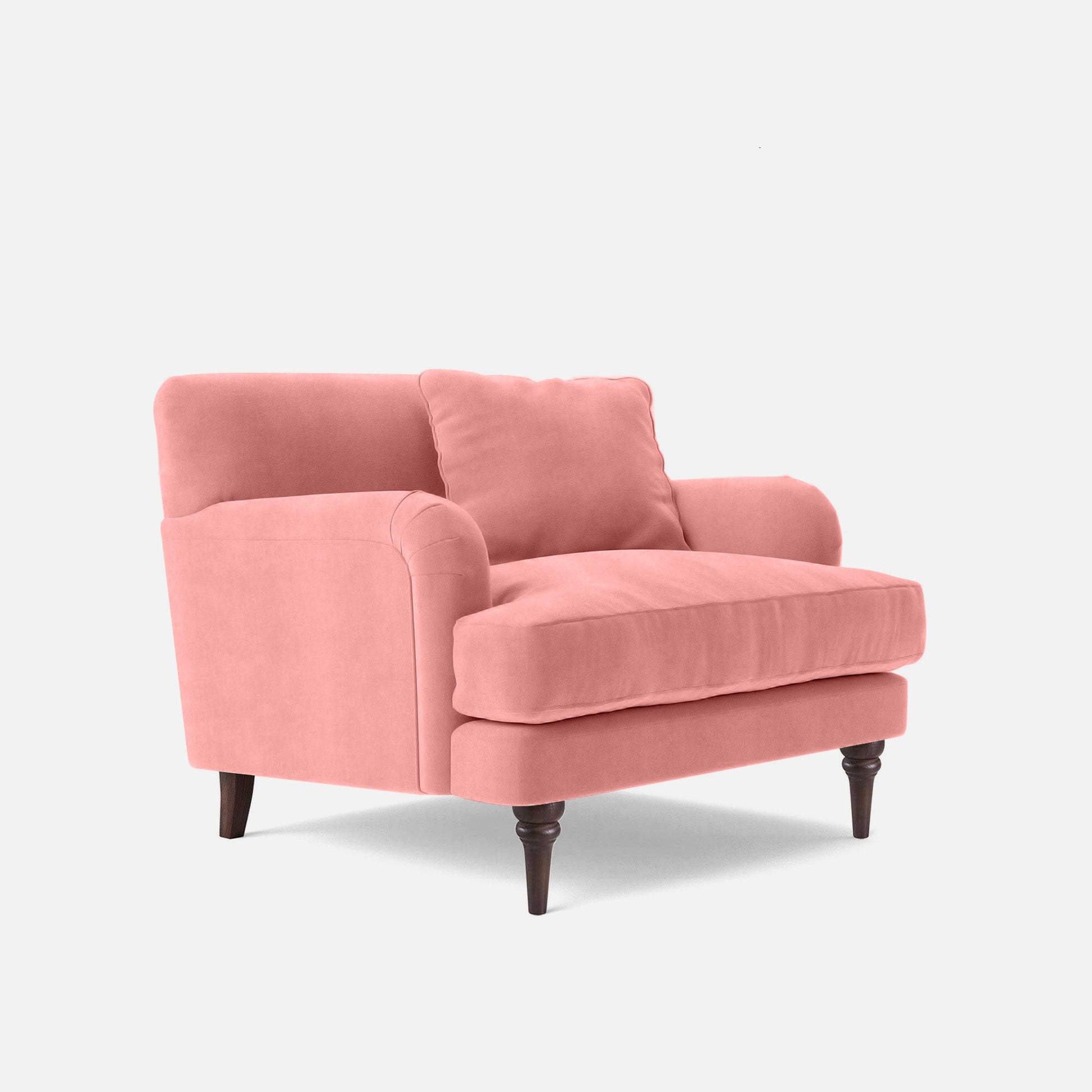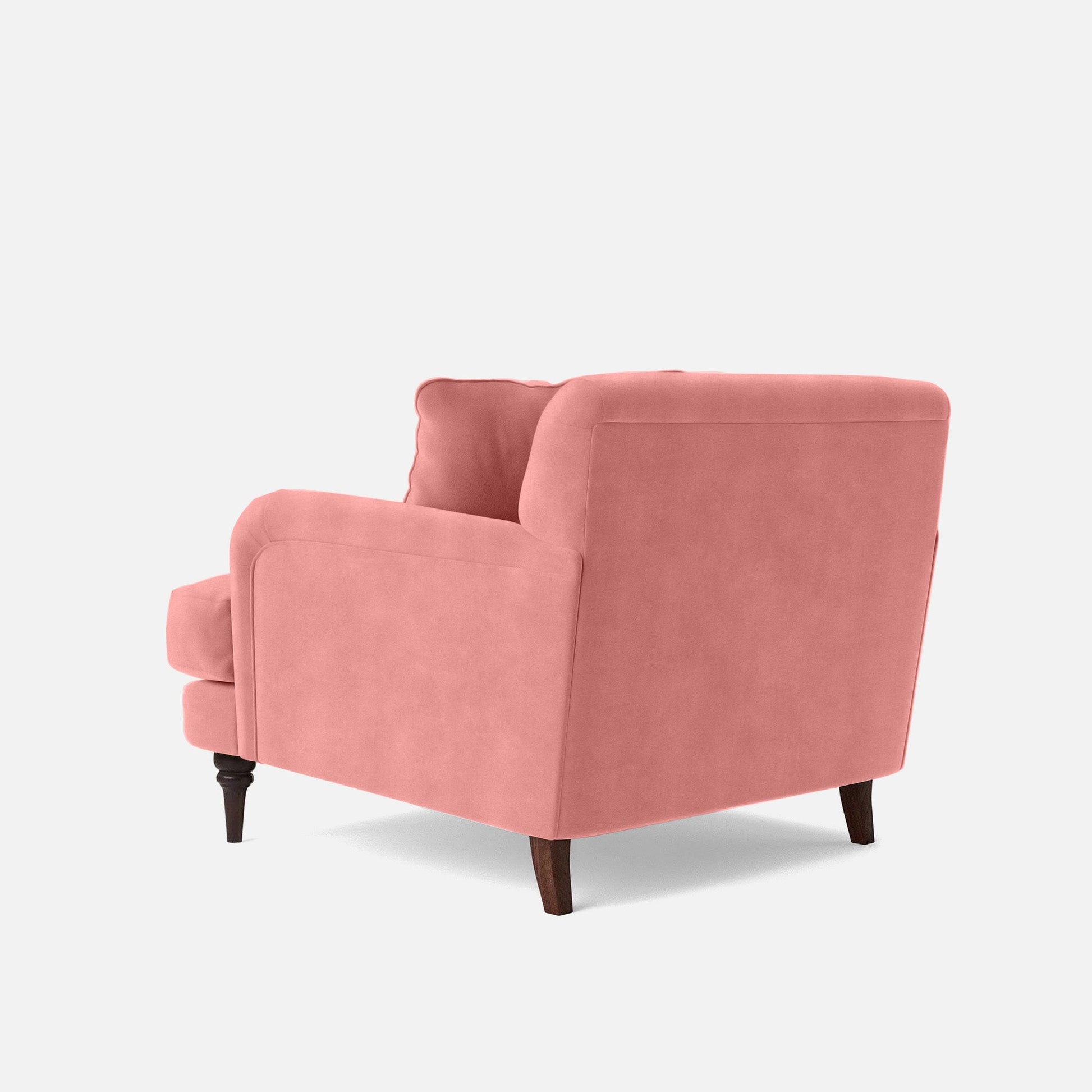 Introducing the Chorle Accent Chair, a masterpiece of timeless elegance and comfort. Its classic English roll arm design boasts beautifully pleated arms, plush and fluffy cushions, and exquisite turned legs. The deep, shapely, sink-right-in cushions rest on a crisp, slender base, harmoniously blending comfort and refinement. Upholstered in a luxurious Salmon Red soft velvet fabric, the Chorle Accent Chair not only elevates your décor but also offers an inviting spot to unwind in style.