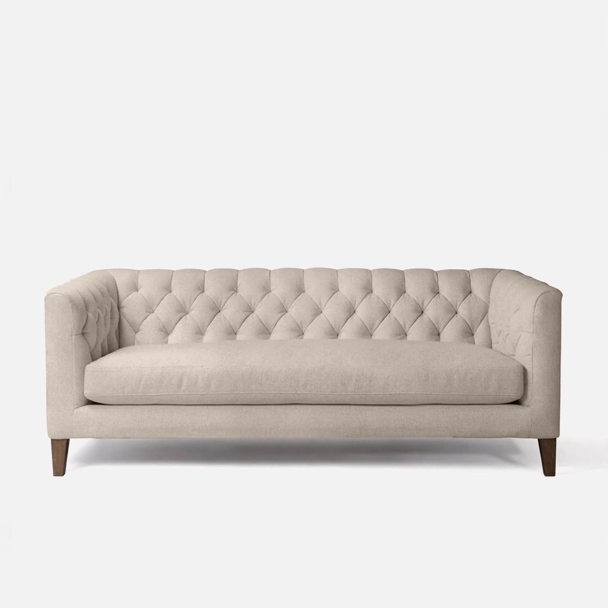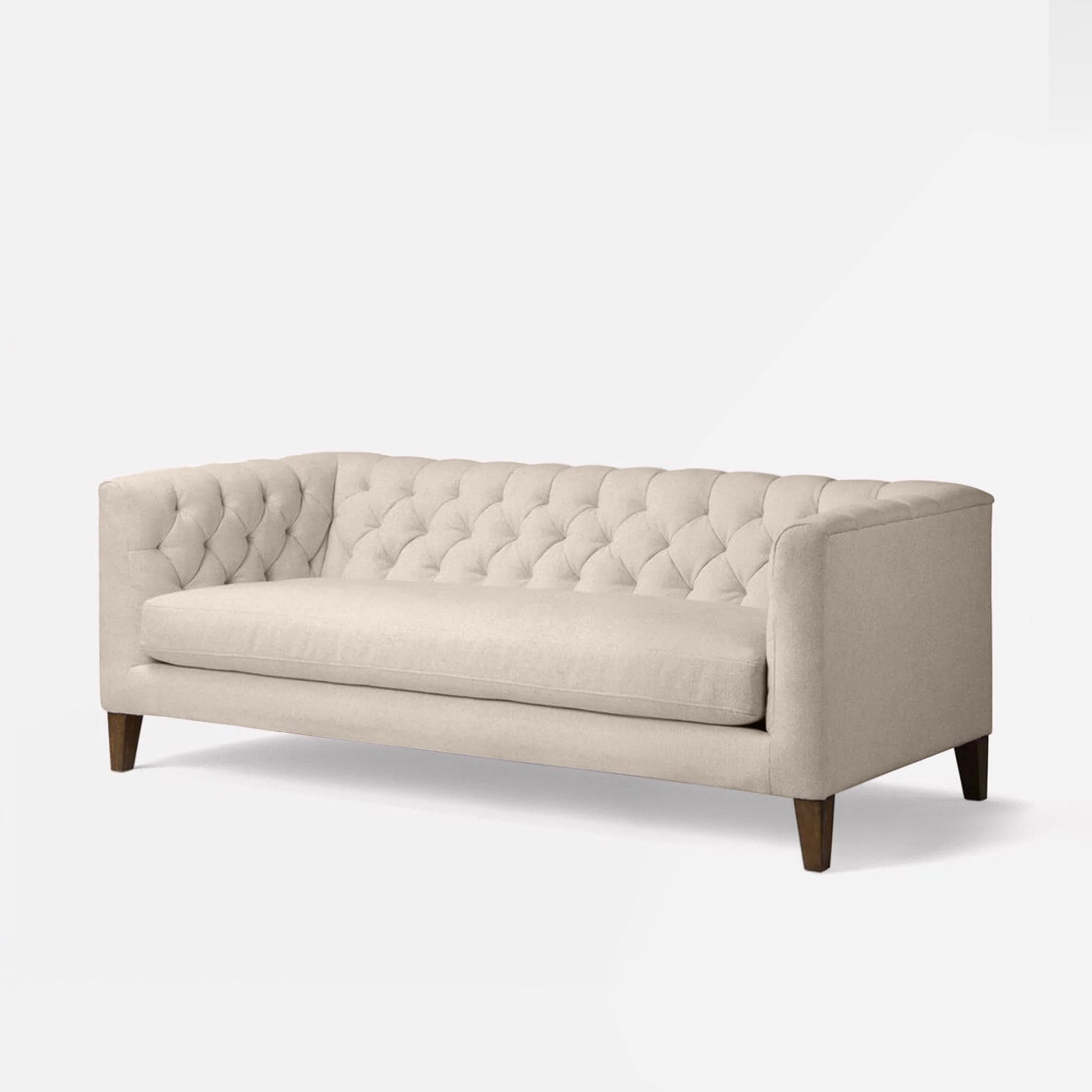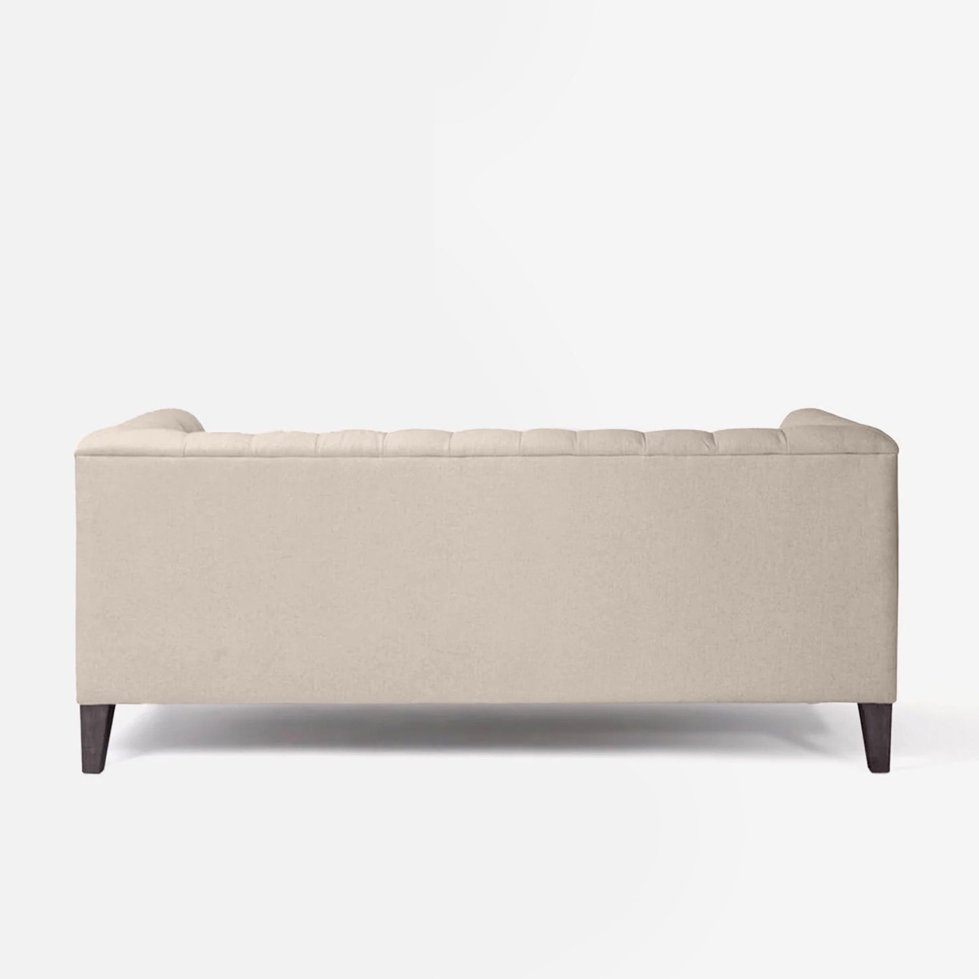 Introducing the "Cruz 2-Seater Sofa - 72"," a refined blend of midcentury elegance and cozy comfort. This handcrafted sofa features a diamond-tufted back and arms, exuding timeless sophistication. Upholstered in soft, high-quality Fur Beige cotton blend fabric, it offers a warm, inviting feel while ensuring durability. With plush foaming for superior comfort, the Cruz is designed for effortless lounging in style.