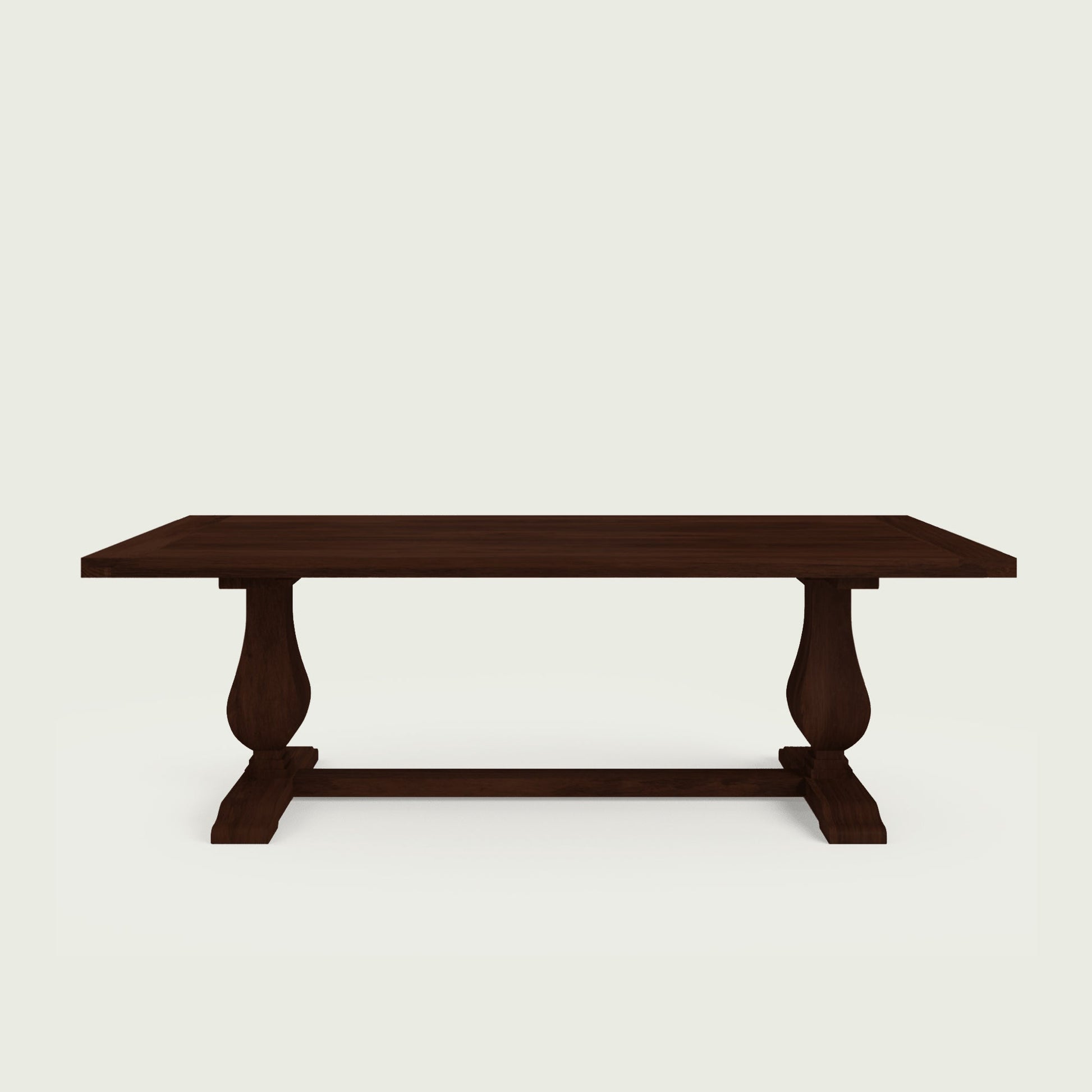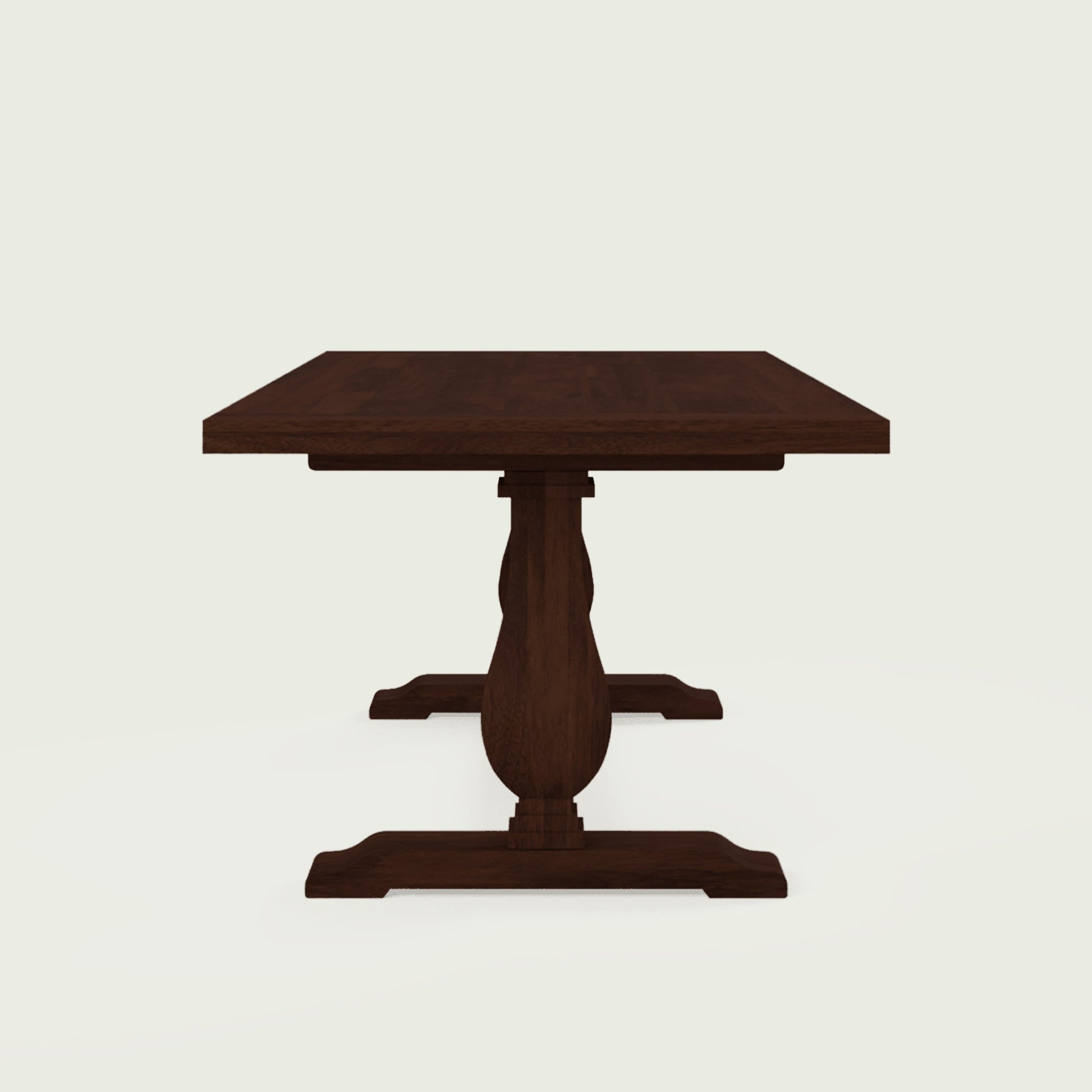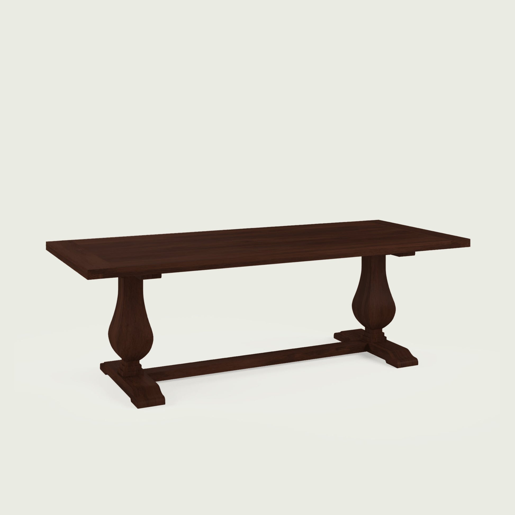 The Derbyshire Luxury Dining Table has an evoking sense of rustic charm. This aesthetic is perfect for farmhouse, cottage, or chic-style interiors. The colour of the table adds a touch of elegance and a vintage vibe. It can be a beautiful addition to rooms with antique or vintage-inspired decor. The striking grains of Walnut finish on Mango wood adapt well to various interior styles. The nicely proportioned frame and luxe coastal look of the Derbyshire Luxury Dining Table finishes keep things subtle and sophisticated, not bulky or overpowering.