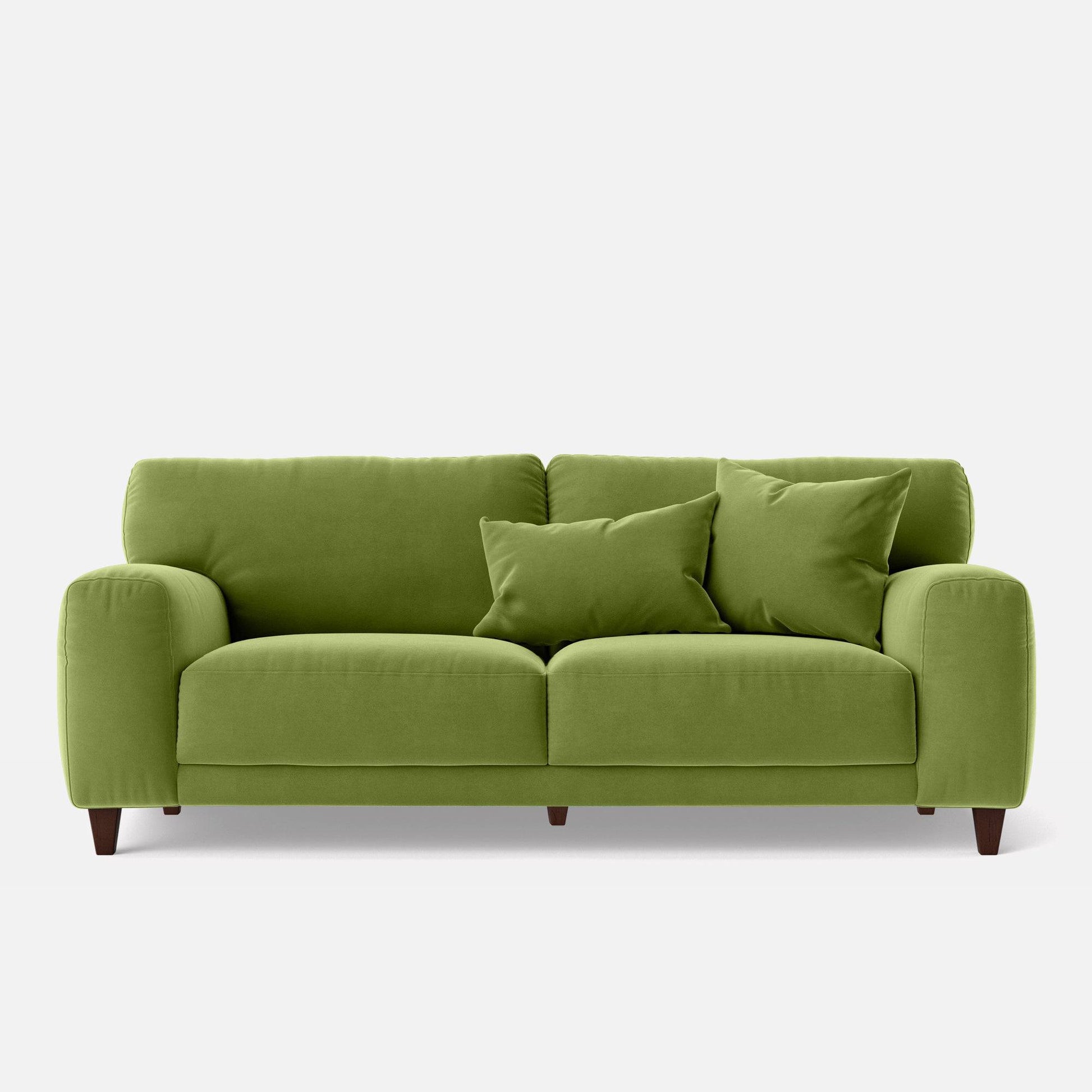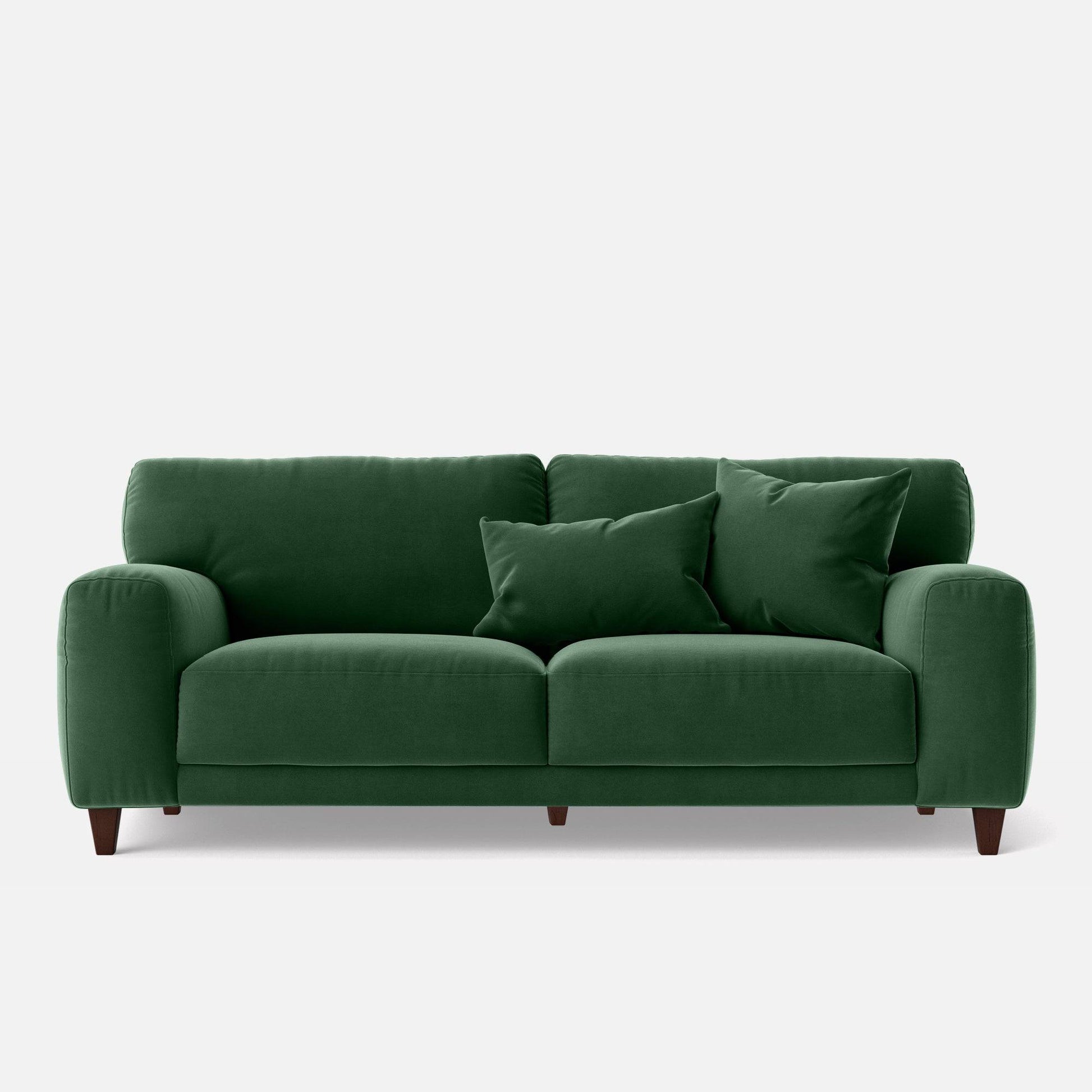 Introducing the Edith 3-seater Sofa, a harmonious blend of spacious comfort and contemporary elegance. Measuring 78 inches, it provides ample seating for three. Edith features a plush and spacious design with wide arms that invite relaxation. Sink right into its upholstered seat and soft plush cushion after a long day, while the robust solid wood frame and short wooden legs ensure durability. Draped in a luxurious Emerald Green blue soft velvet fabric, this sofa adds a touch of opulence to your living space.