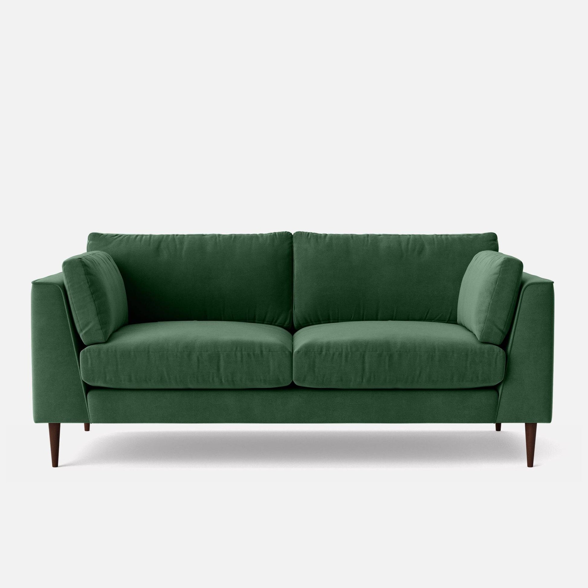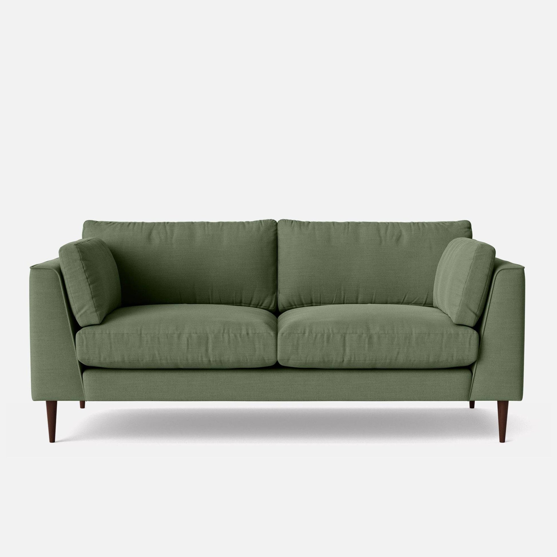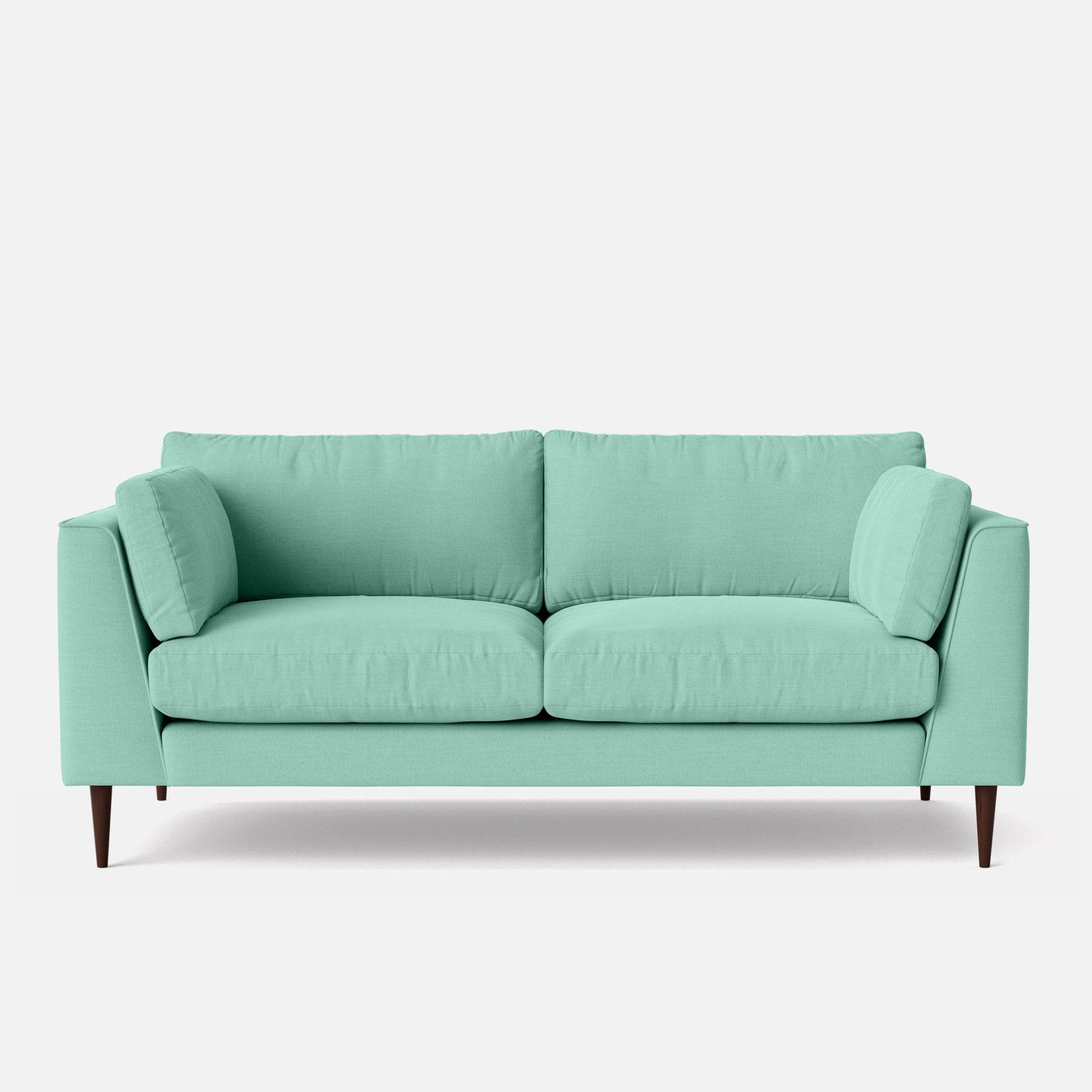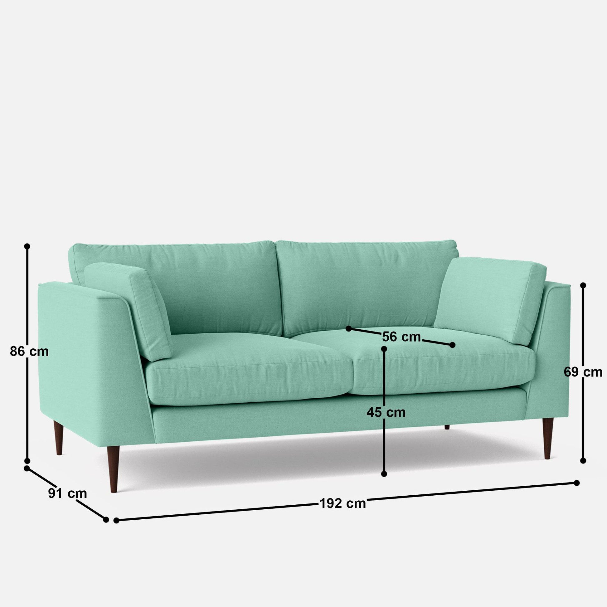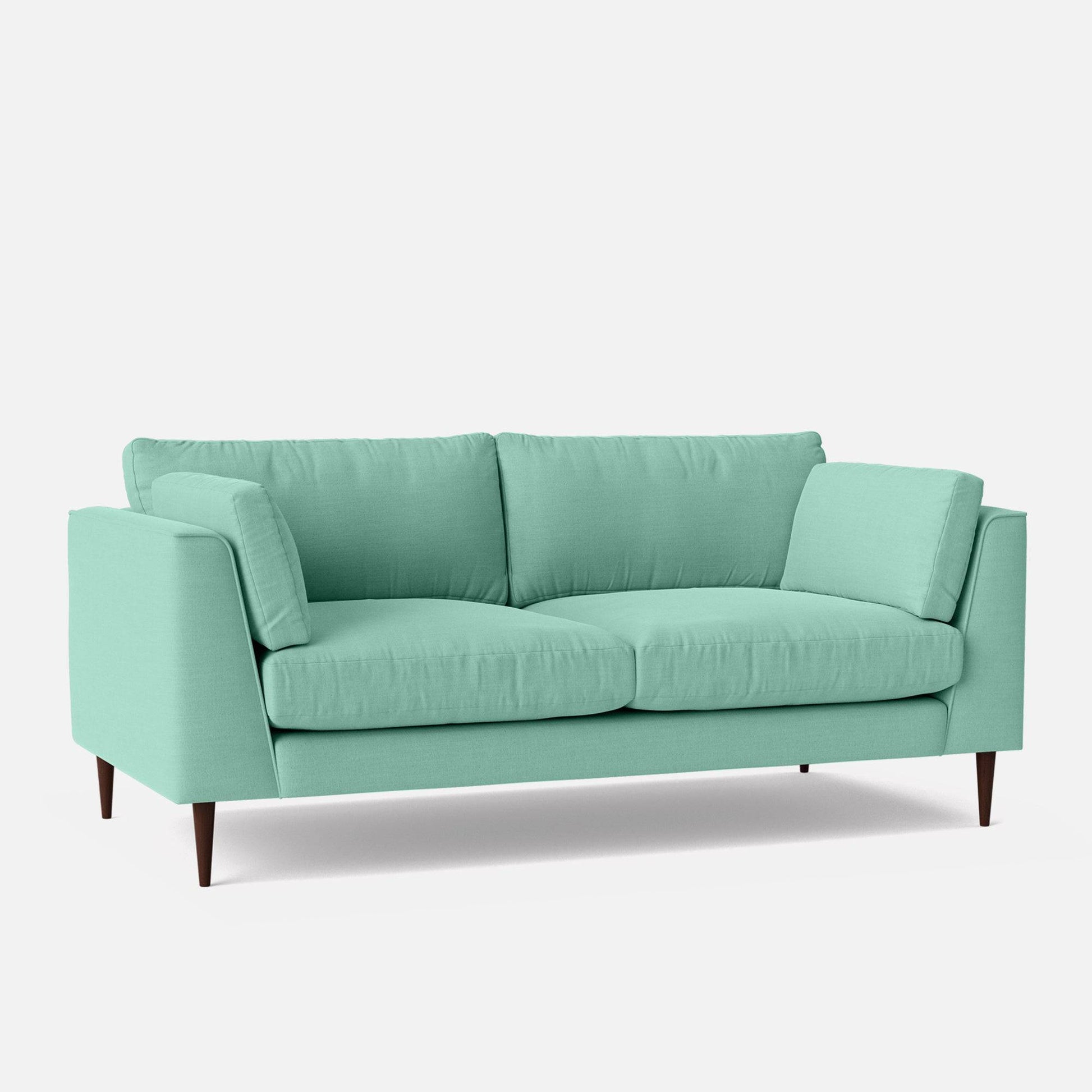 Introducing the Freda 3-Seater Sofa, where sophistication meets comfort. Measuring 75.5 inches, it offers spacious seating for three. Freda boasts a unique sloped arm design and plush cushioning that creates an inviting ambience for relaxation. Supported by robust solid wood legs, this sofa seamlessly blends style with durability. Adorned in a luxurious Tiffany Blue Cotton Blend fabric, it's a statement piece that adds elegance and opulence to your living space.