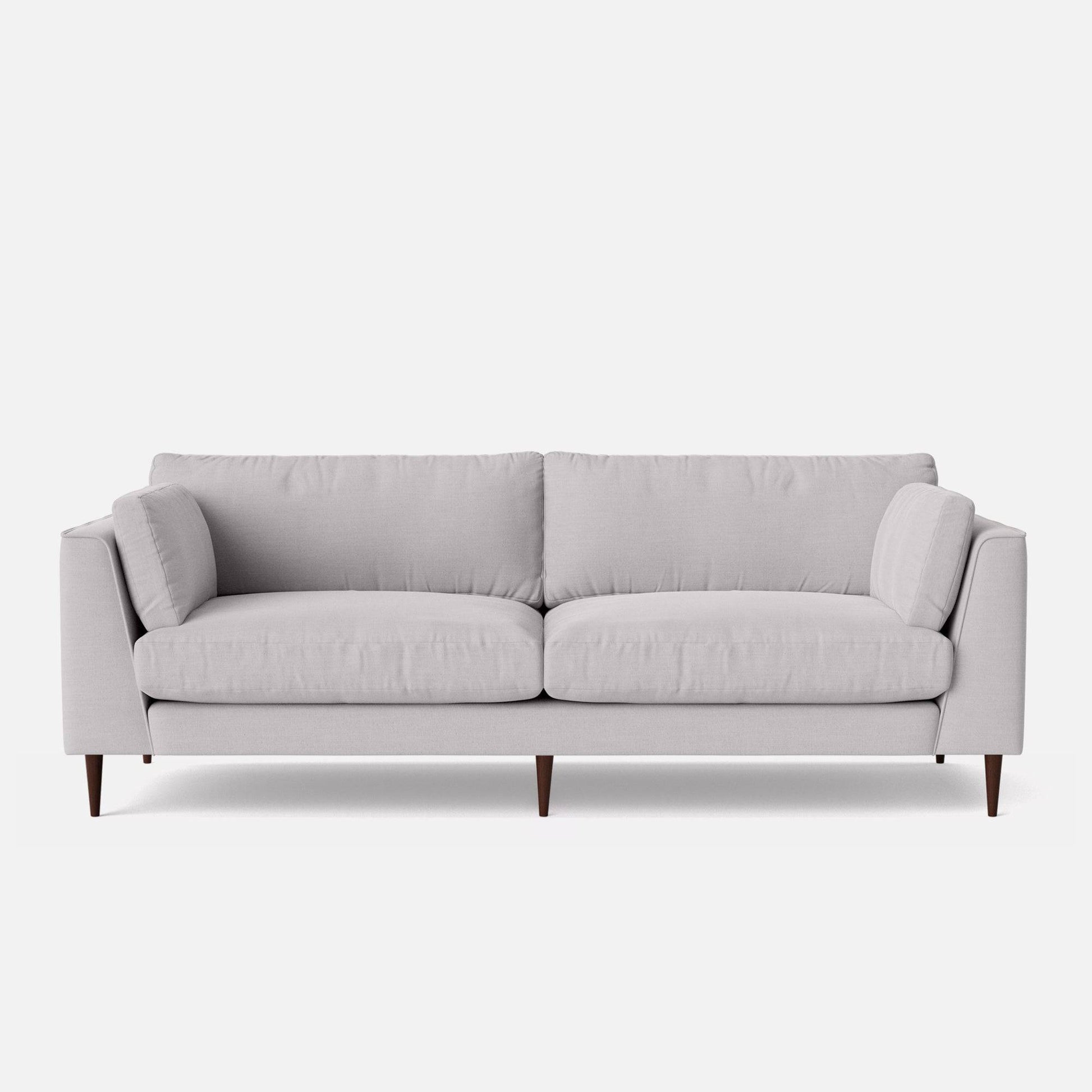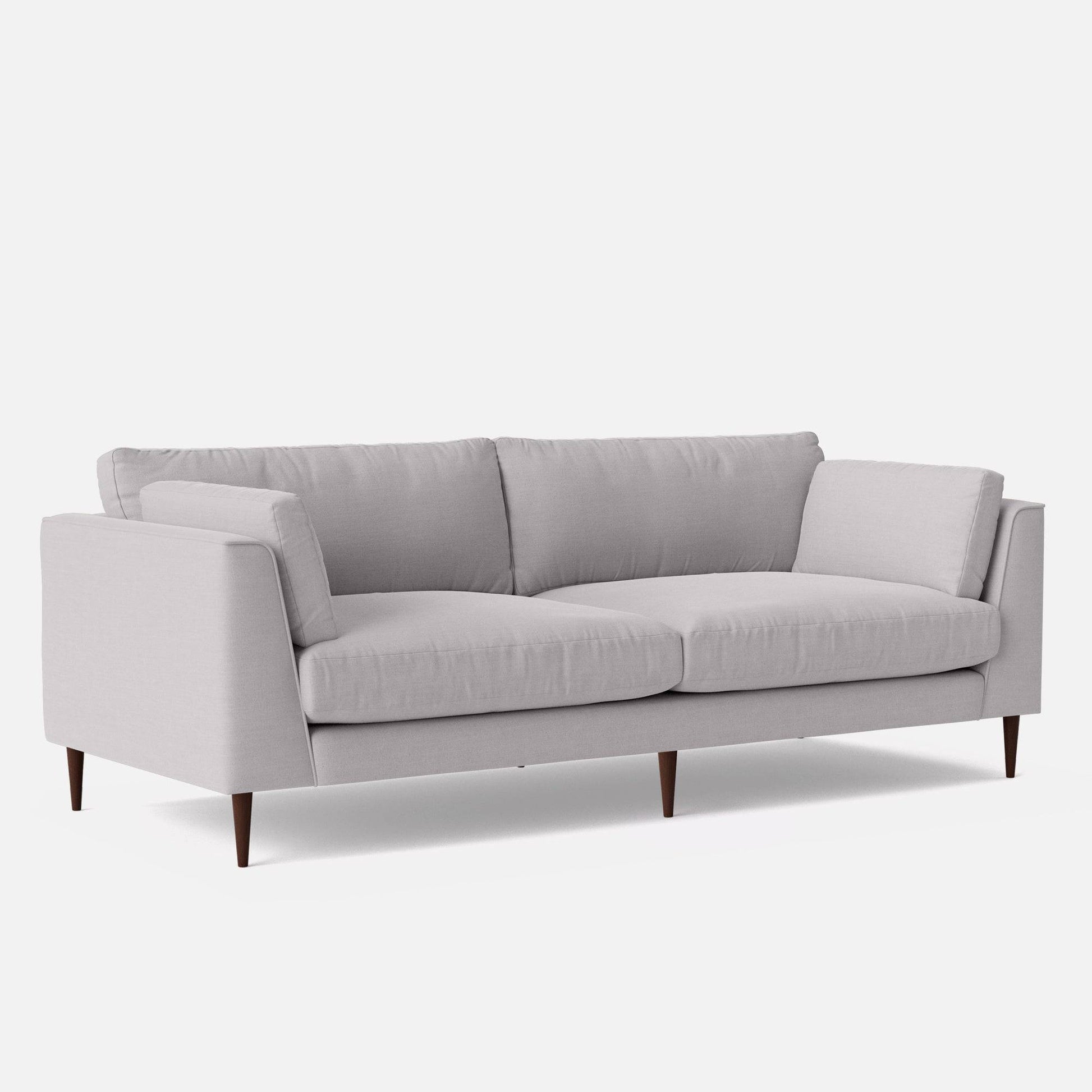 Introducing the Freda 4-Seater Sofa, a harmonious blend of style and comfort. Measuring a spacious 89 inches, it provides generous seating for four. Freda features a distinctive sloped arm design with plush cushioning, inviting you to relax in style. Supported by robust solid wood legs, this sofa is built to last. Dressed in a Soft Light Ash Grey Cotton Blend fabric, it adds a vibrant touch of opulence and sophistication to any room.