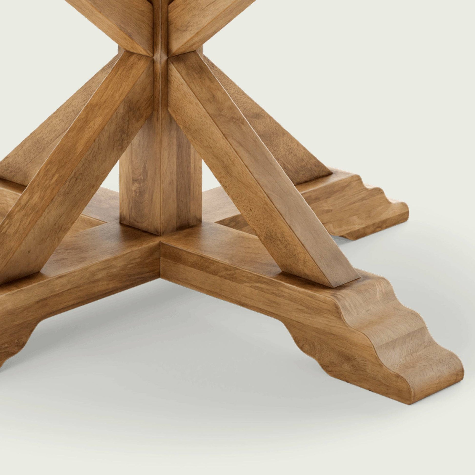 Indulge in the perfect blend of style, quality, and comfort with CraftsMill's remarkable Gable Luxury Round dining table set, paired with Espana chairs. Crafted from durable mango wood with a natural finish, the set exudes sophistication. The solid round table top exudes natural beauty and elegance, it provides ample space for gatherings. Accompanied by four classic upholstered Espana Chairs. The chairs boast comfortable Coral Orange cotton blend seat upholstery with soft cushioning, adding a touch of vibrancy and comfort to your dining experience.