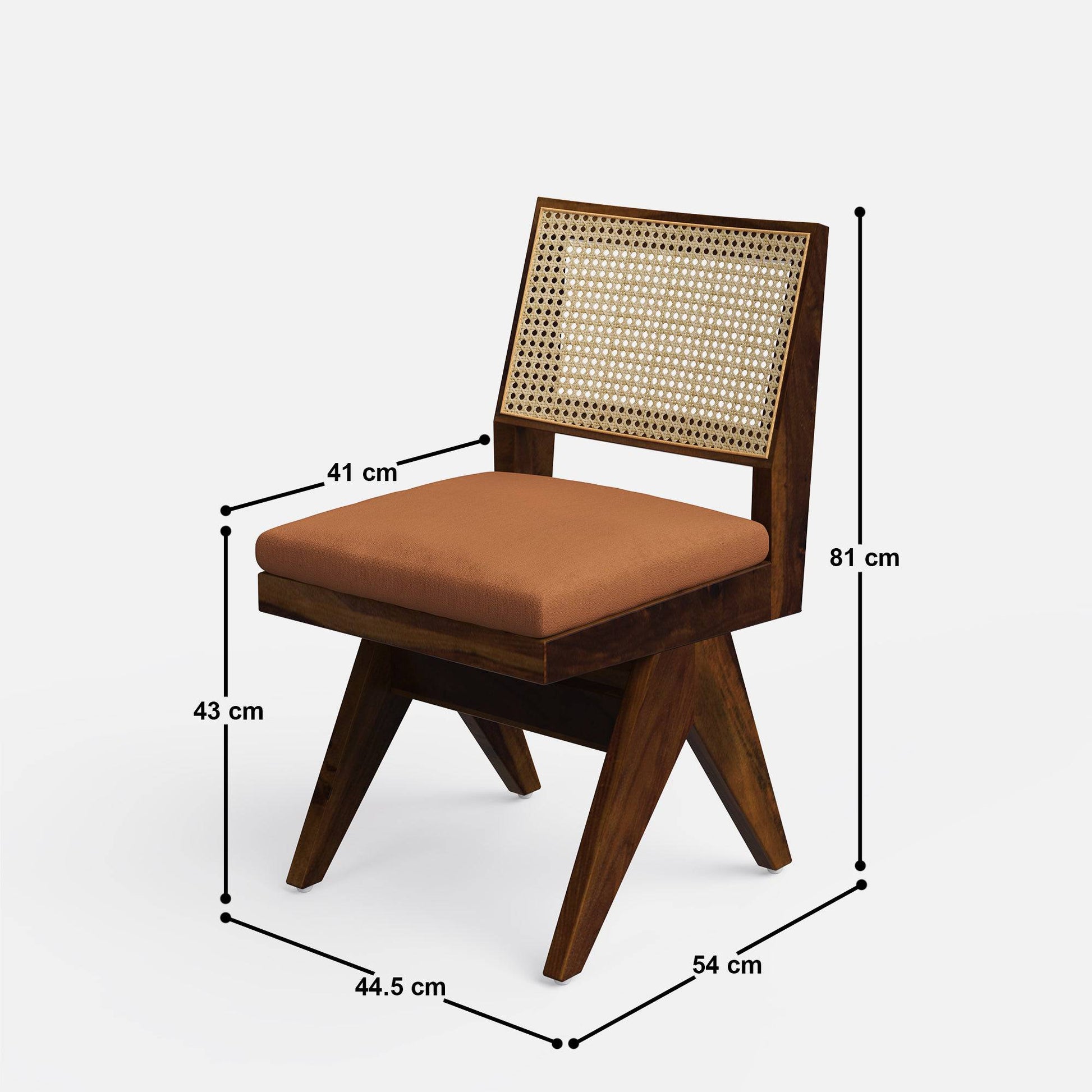 Introducing the Helena Jean Dining Set, where Scandinavian elegance meets contemporary comfort. Crafted from Sheesham wood, the Helena table showcases a Walnut finish, a parquet-patterned top, and sleek tapered round wooden legs. Paired with Jean chairs in a Honey finish, inspired by Pierre Jeanneret's style, and upholstered in Ginger Orange Linen Blend fabric, this set is available in 4 and 6-seater sizes. The design exudes timeless charm and comfort for a stylish dining experience.