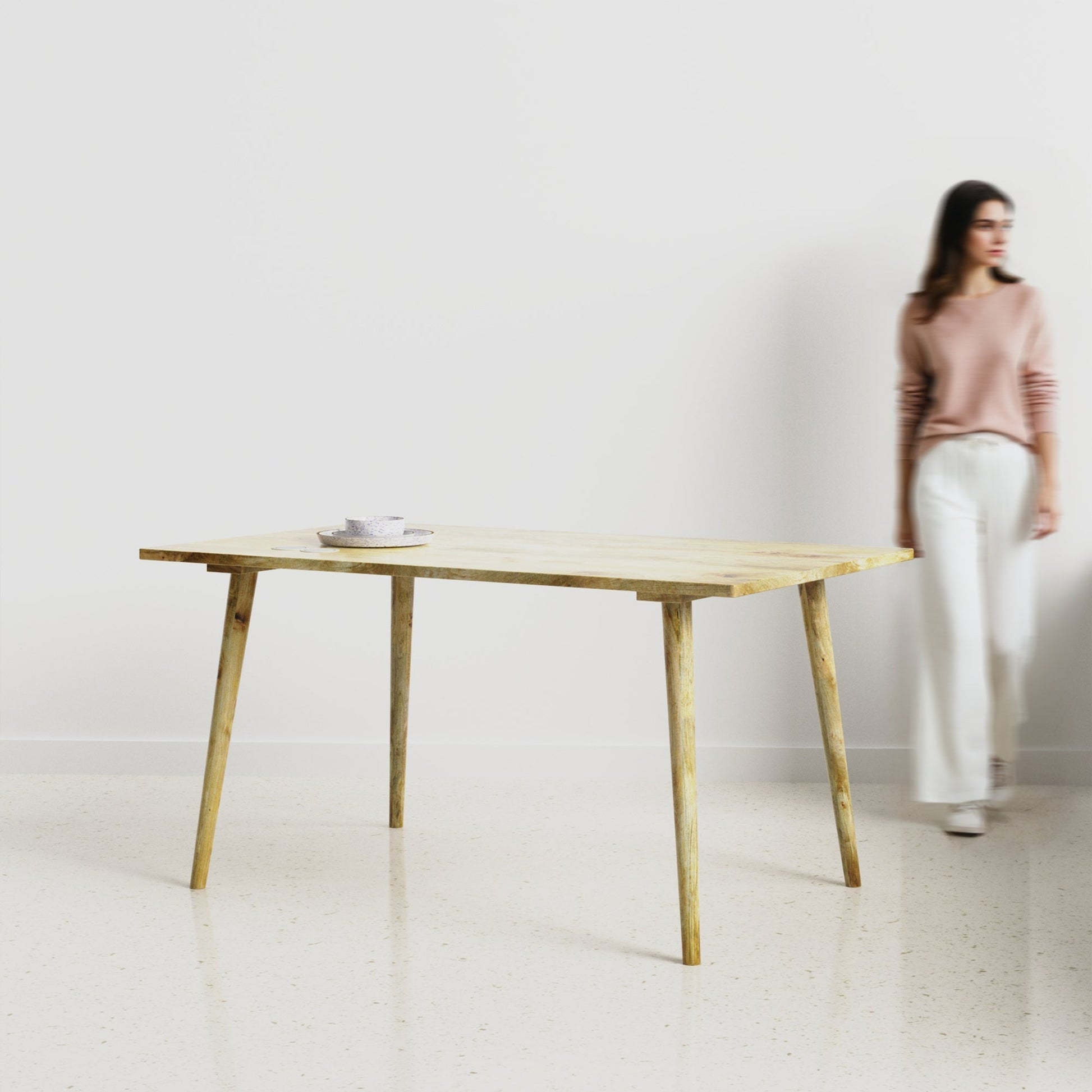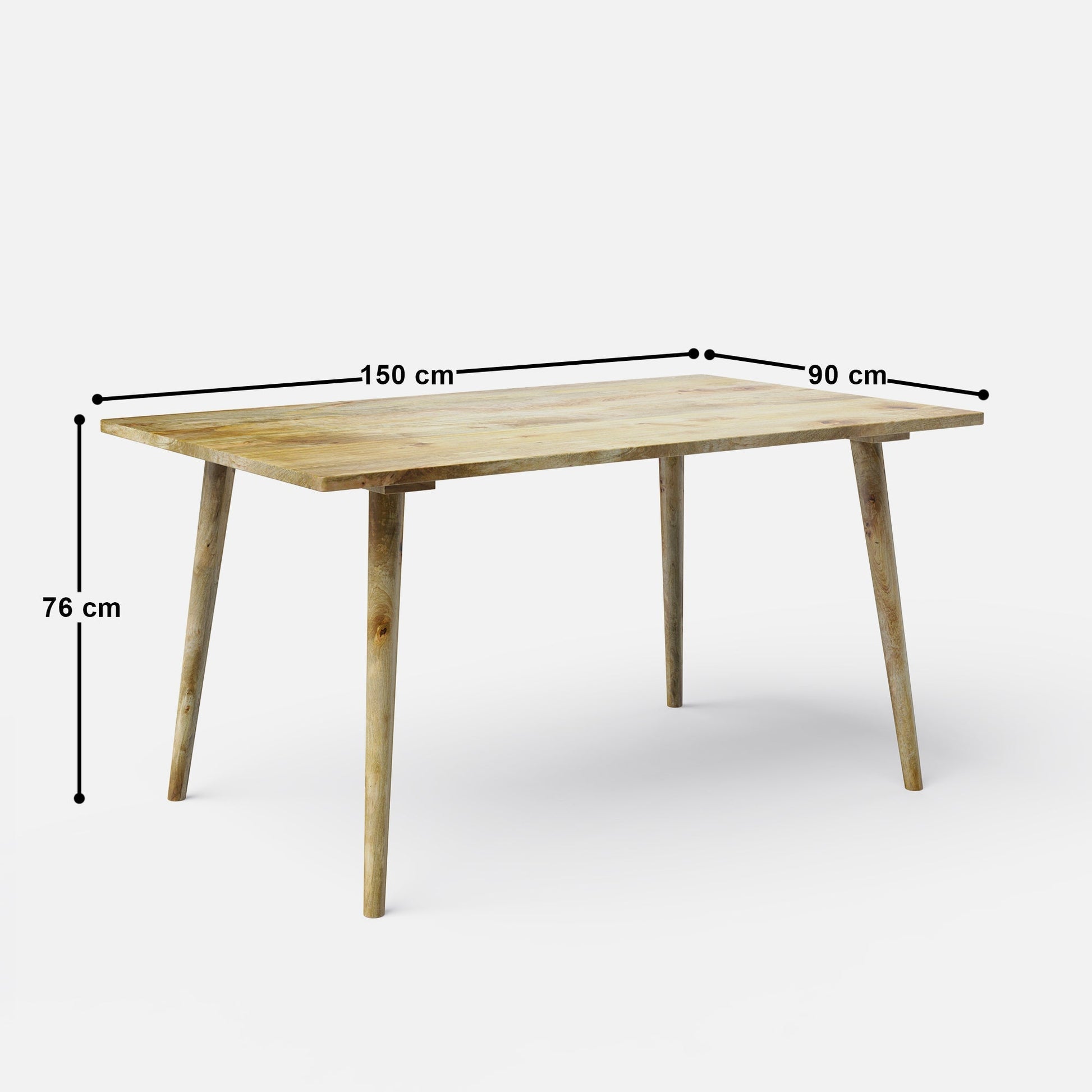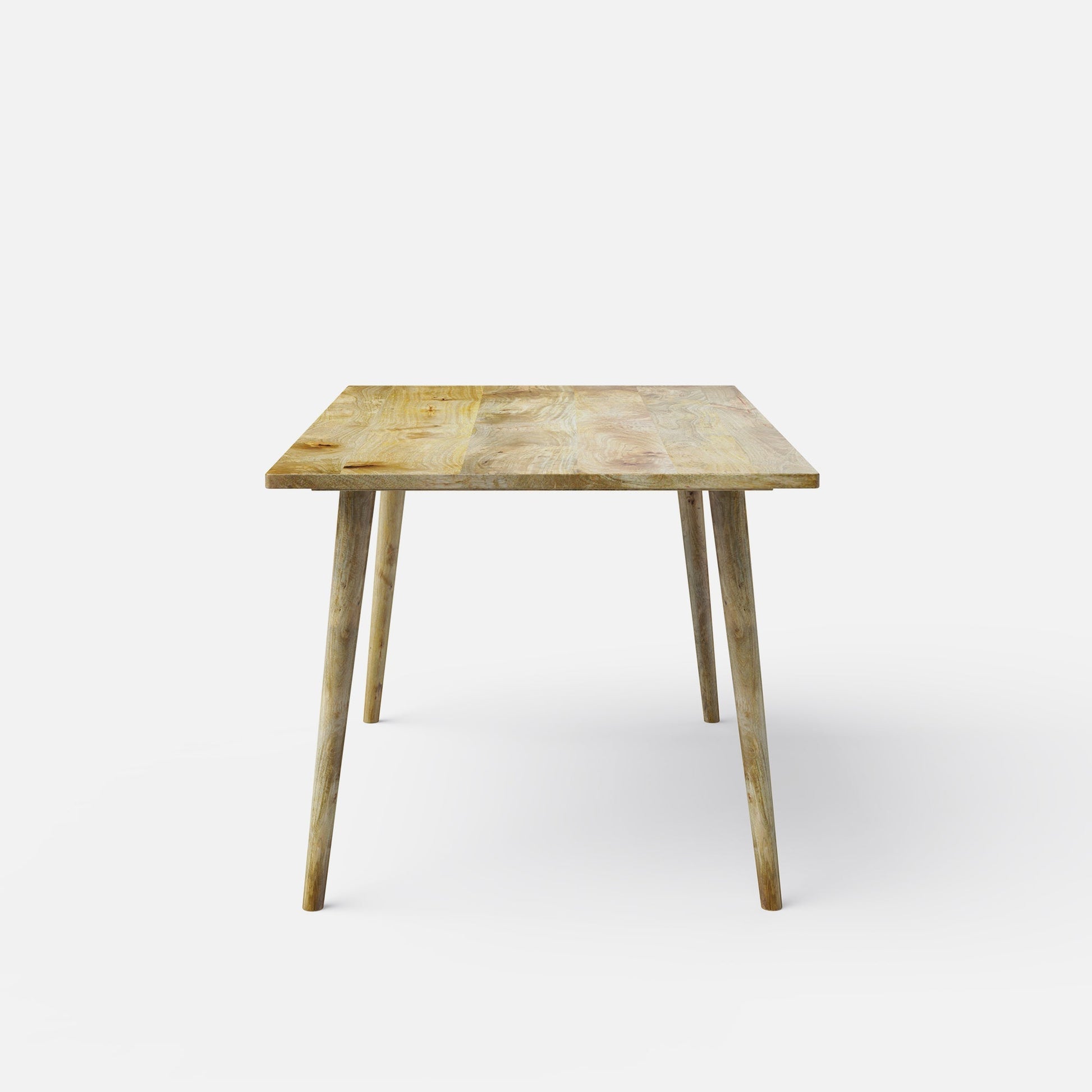 The Helena Luxury Dining Table is from Crafts Mill's contemporary Scandinavian collection and features a rectangular tabletop with tapered legs, bringing out the ageless charm in your eyes. The simple and quaint design allows it to be coupled with various decor styles. The solid mango wood used in designing the table is hard and dense making it durable and resistant to wear and tear. Its warm and rich colour adds character and beauty to the dining room. The slanted legs give it an unmatched elegance. The table comes in a range of shades from Natural to Mahogany finish.
