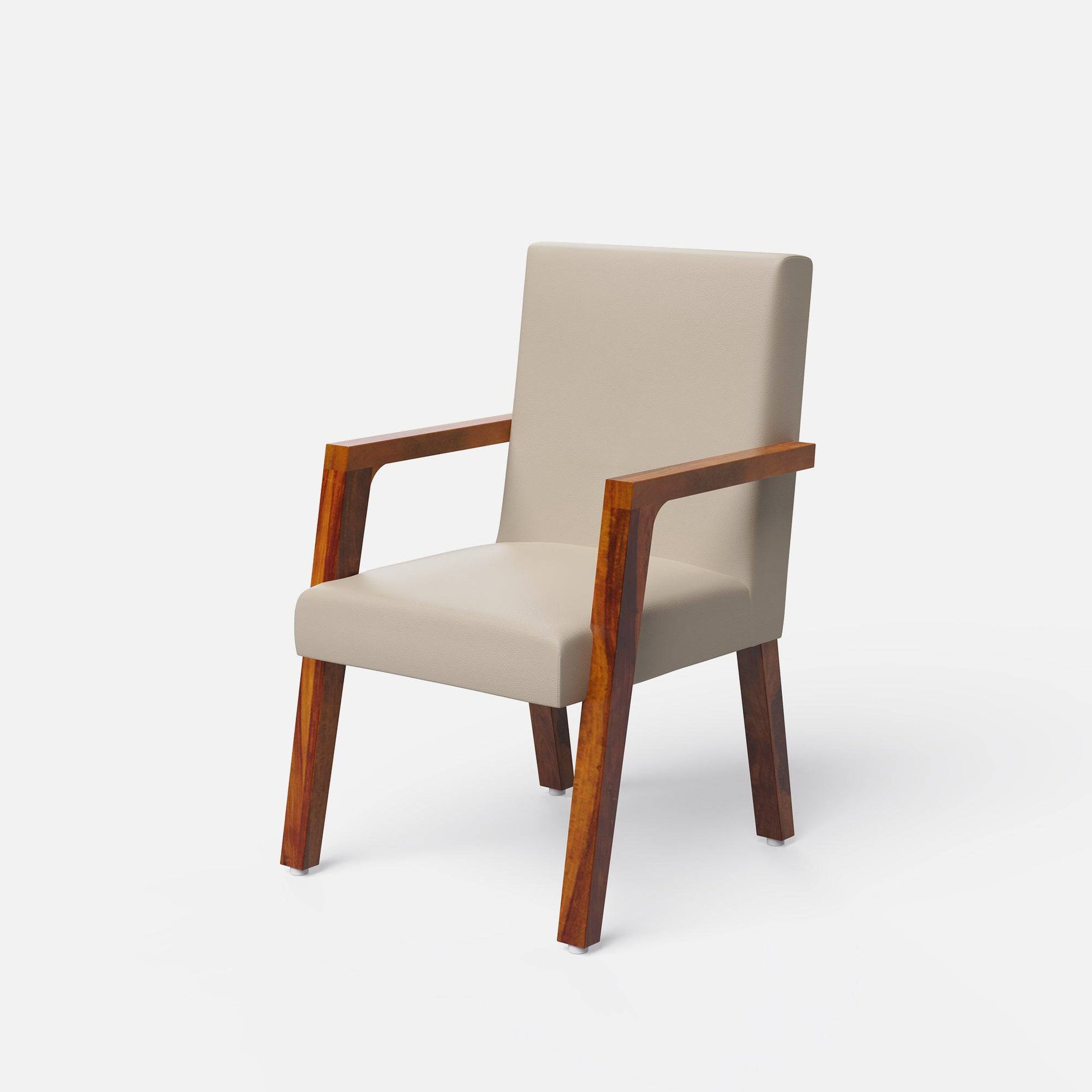 - Box-like chairs with sleek arms and legs for modern appeal