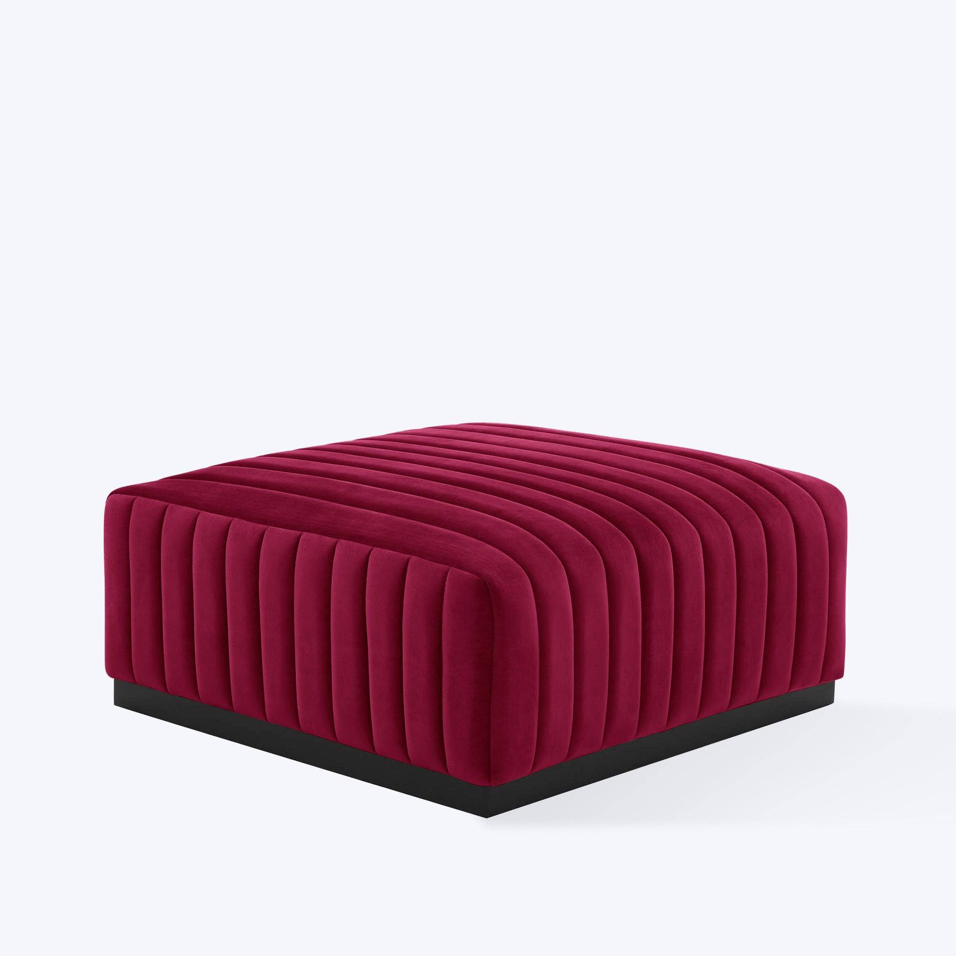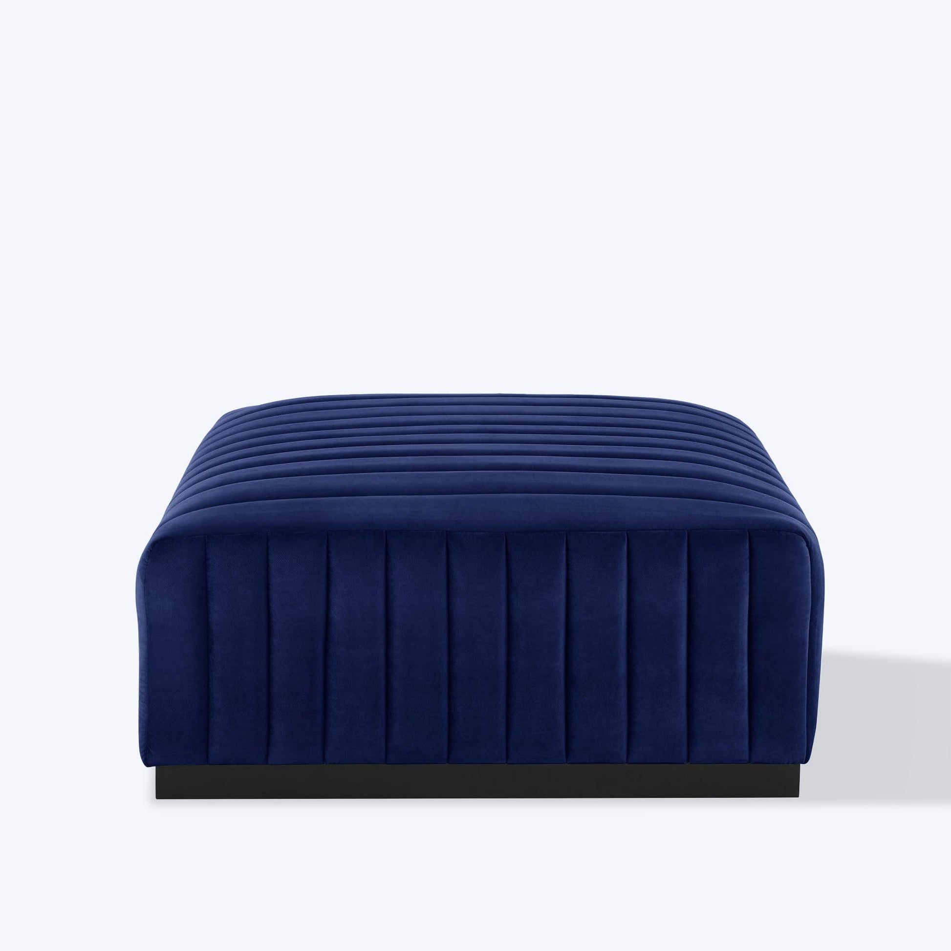 The Jazz Channel Tufted Upholstered Ottoman exudes a contemporary aesthetic. An ottoman for the living room that will become everyone's favourite place to relax is made of supportive dense foam cushioning, and luxuriously soft fabric upholstery. This sectional piece with an antique aesthetic has modest French piping and vertical channel tufting that give it depth and literally makes it the centre of attention in your home interior.