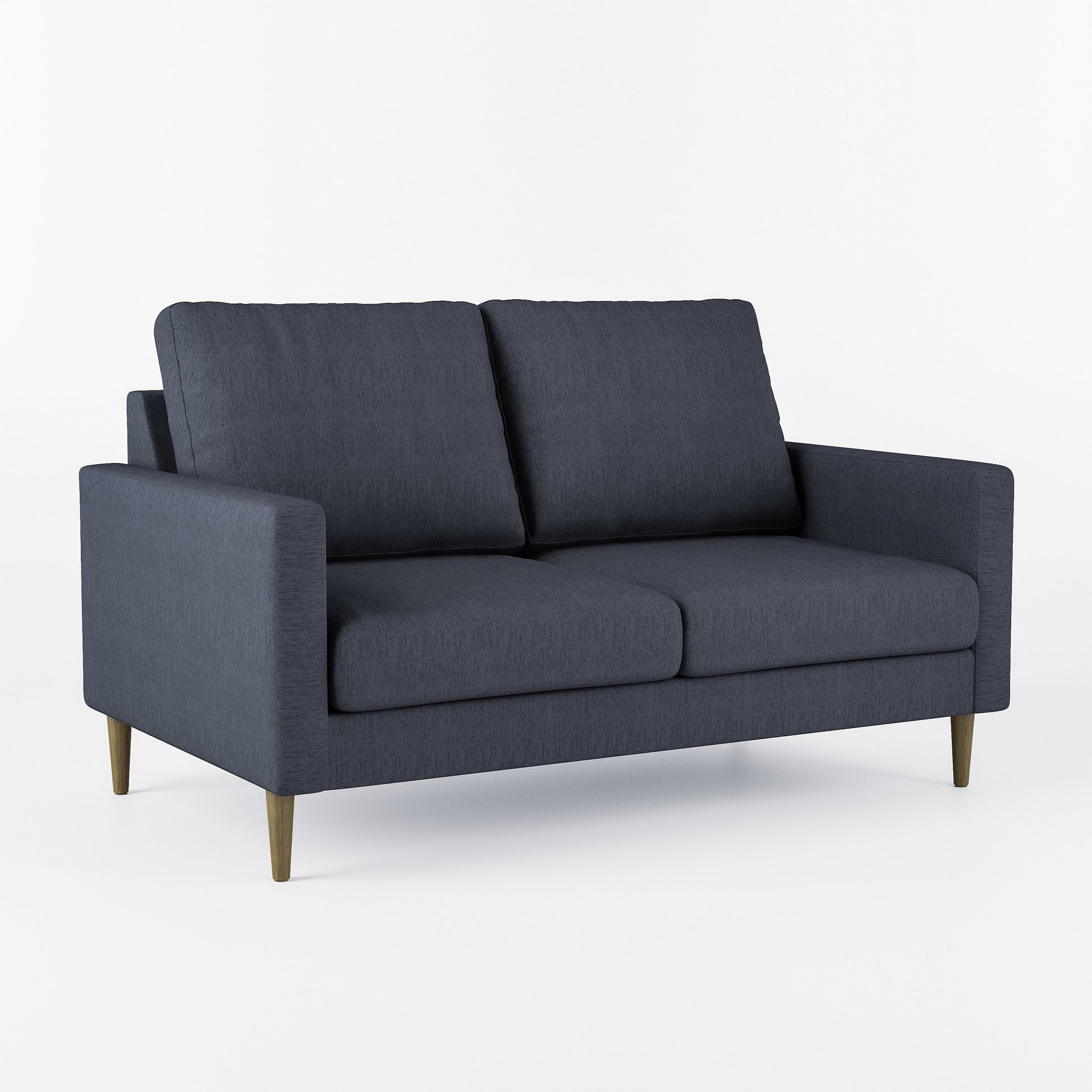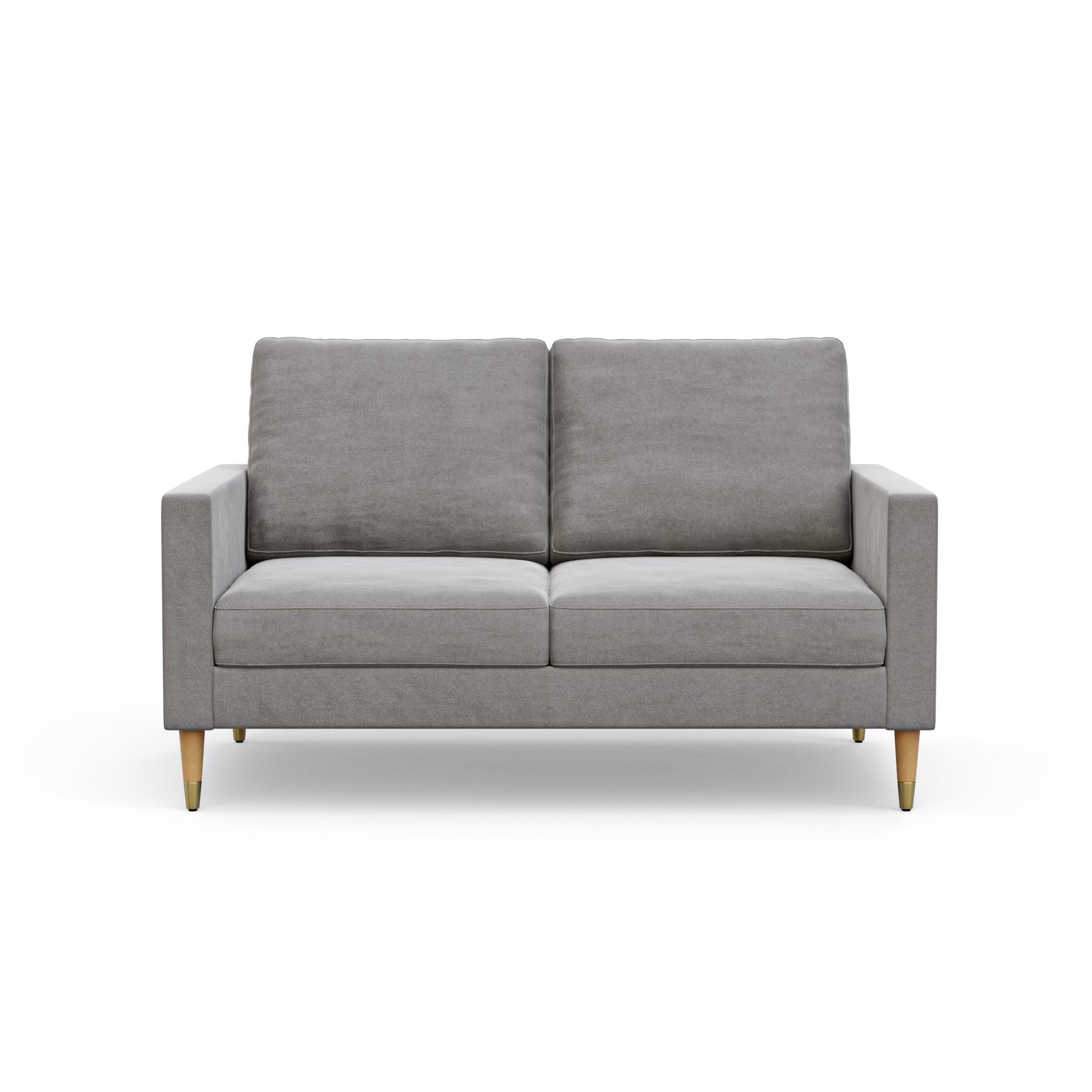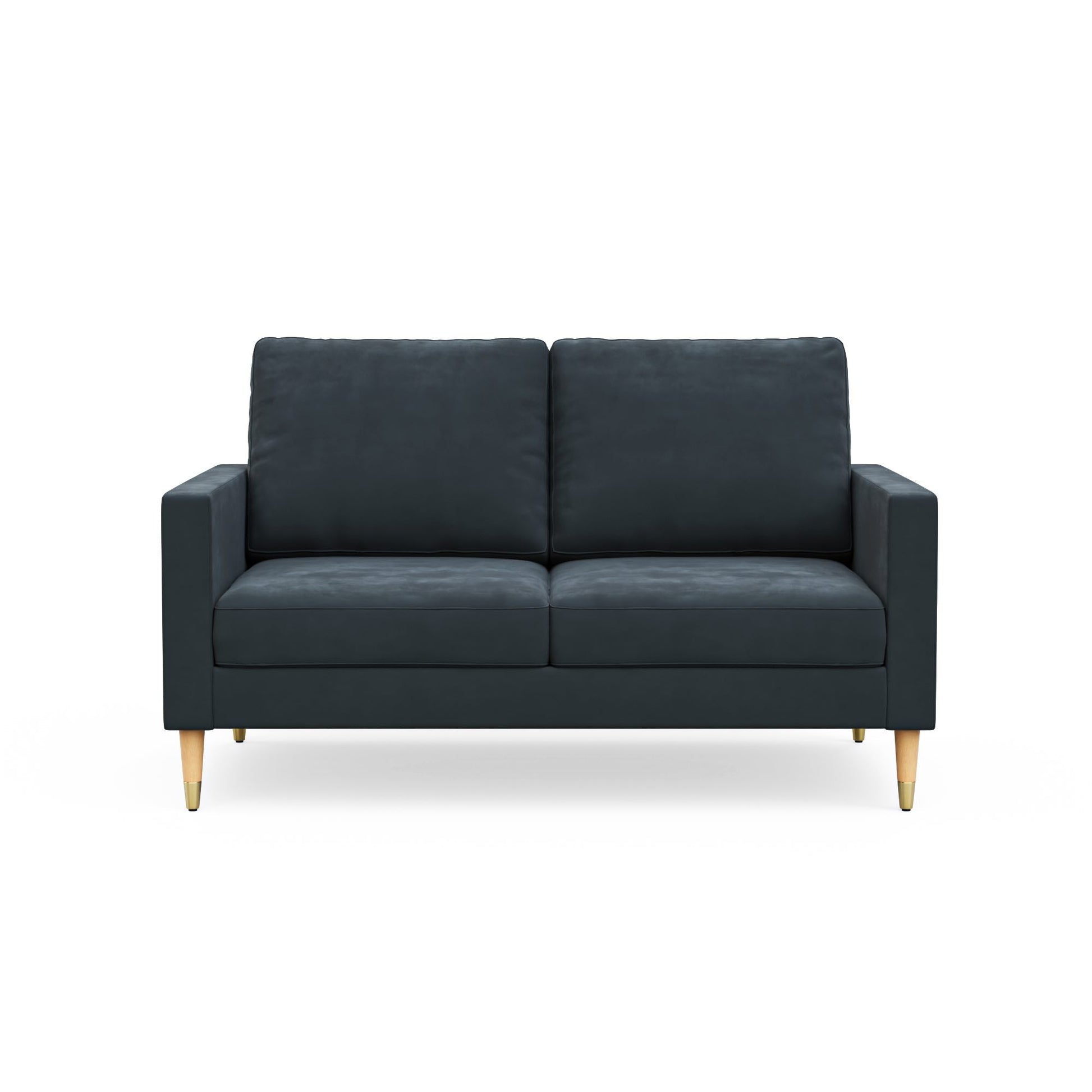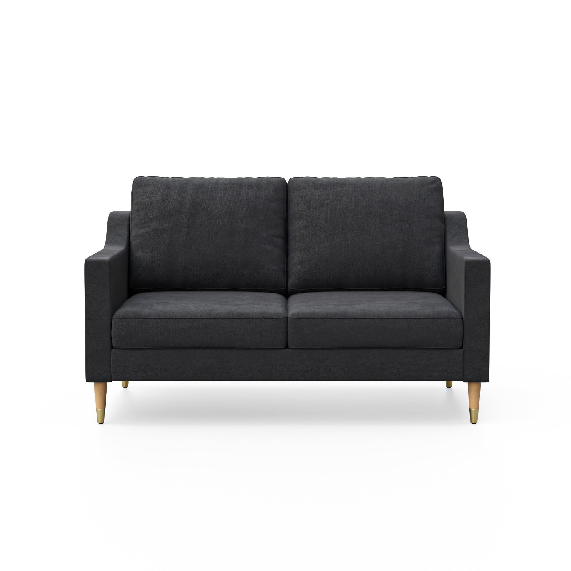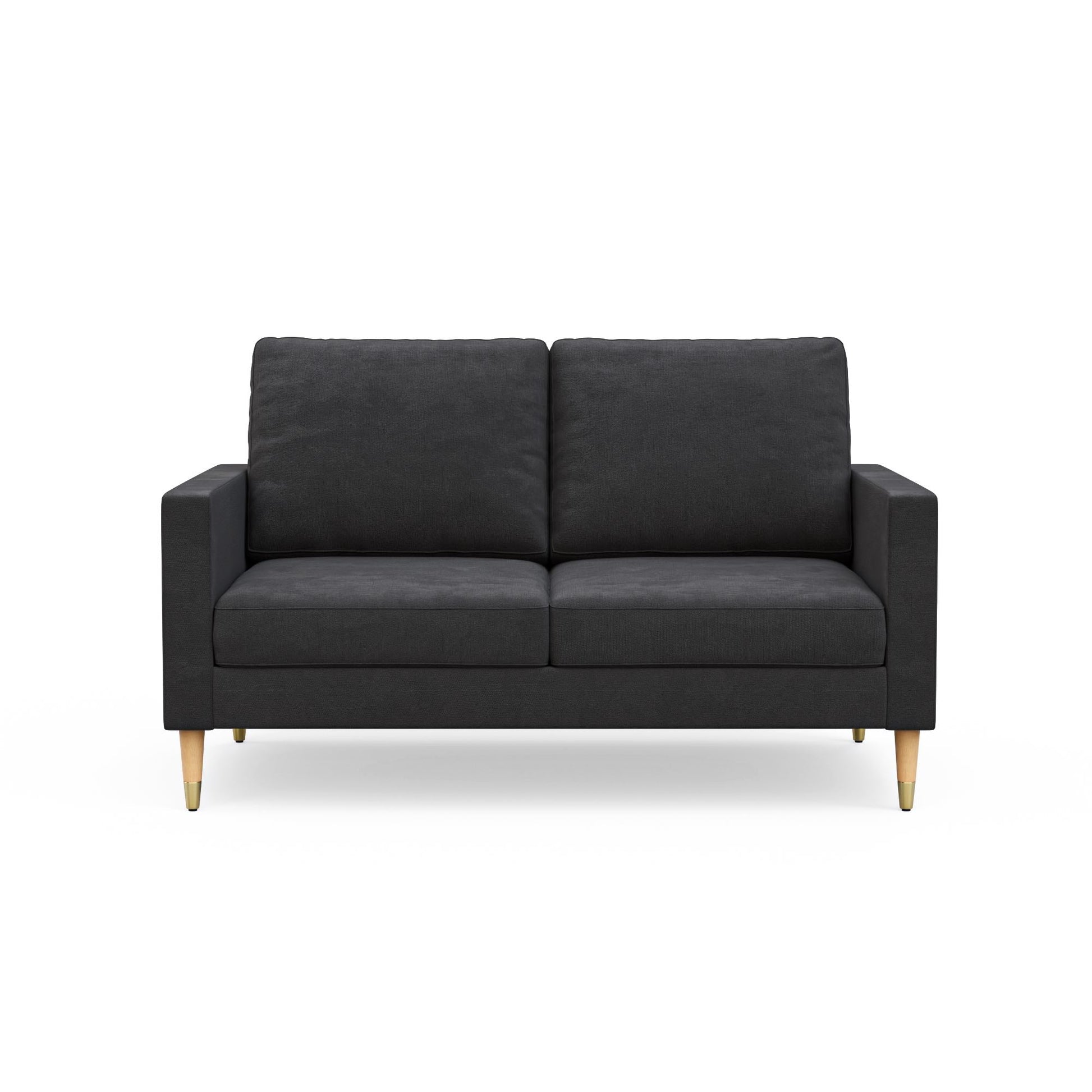 Loveseat that comfortably seats 2. Jump, nap, sit, this sofa holds up with its sturdy steel frame and firm seat cushions. With clean lines and a classic design, our sofa was made for lasting comfort.