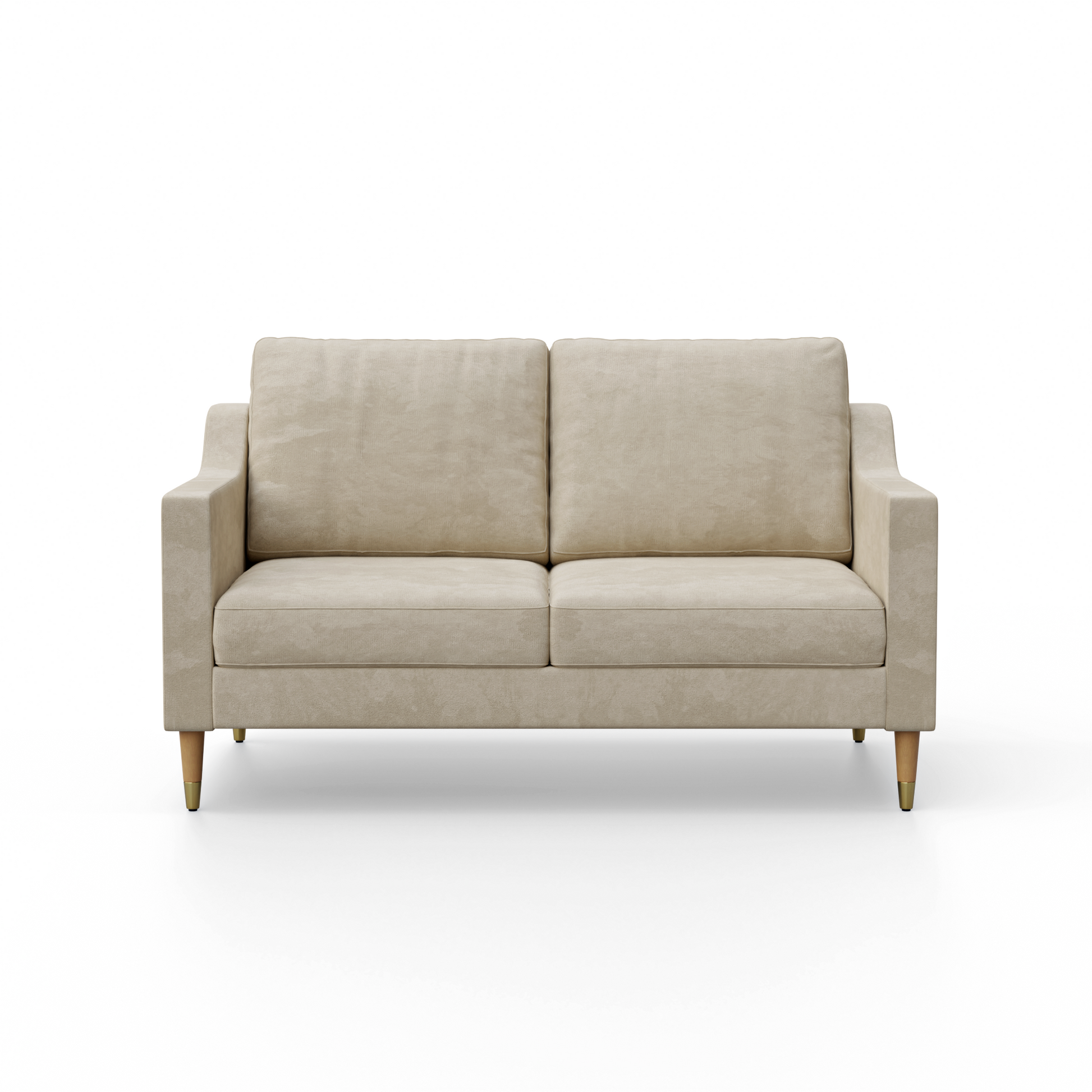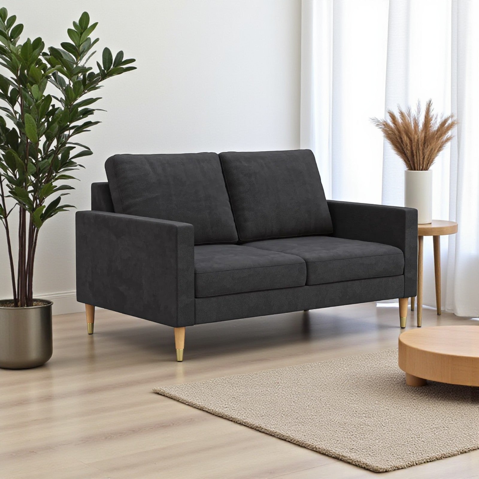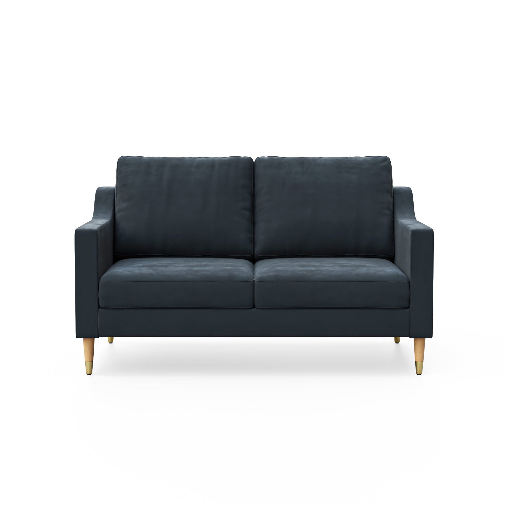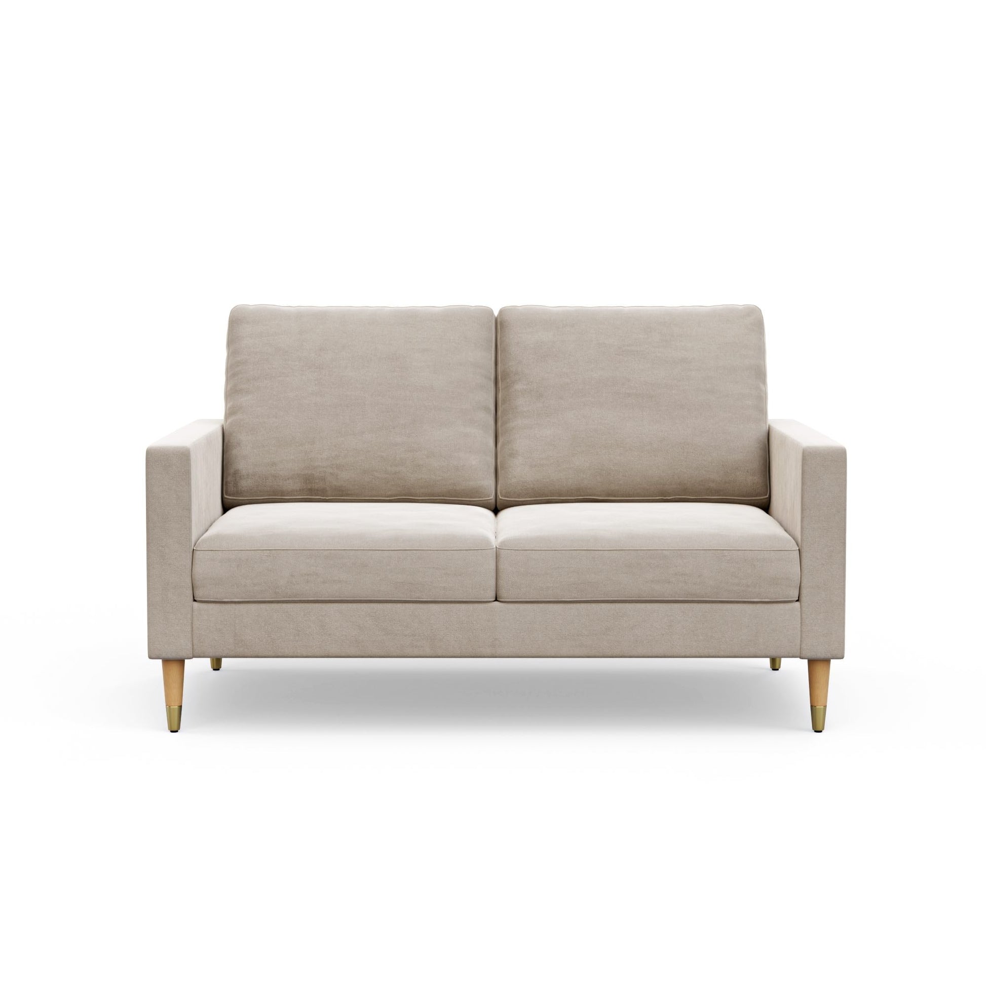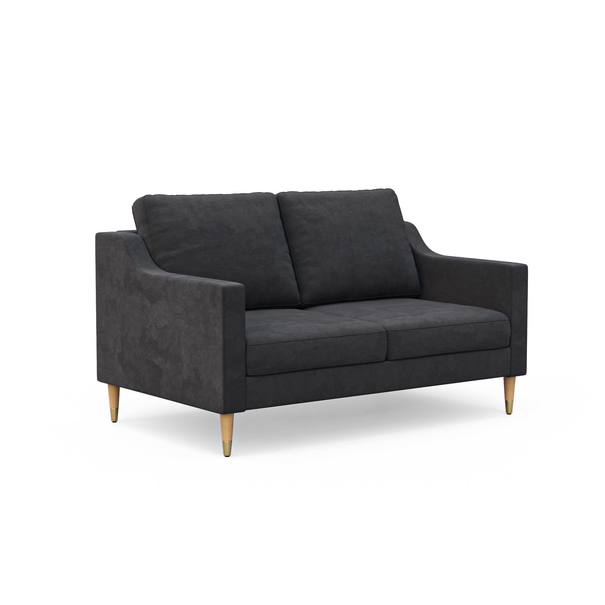 Loveseat that comfortably seats 2. Jump, nap, sit, this sofa holds up with its sturdy steel frame and firm seat cushions. With clean lines and a classic design, our sofa was made for lasting comfort.
