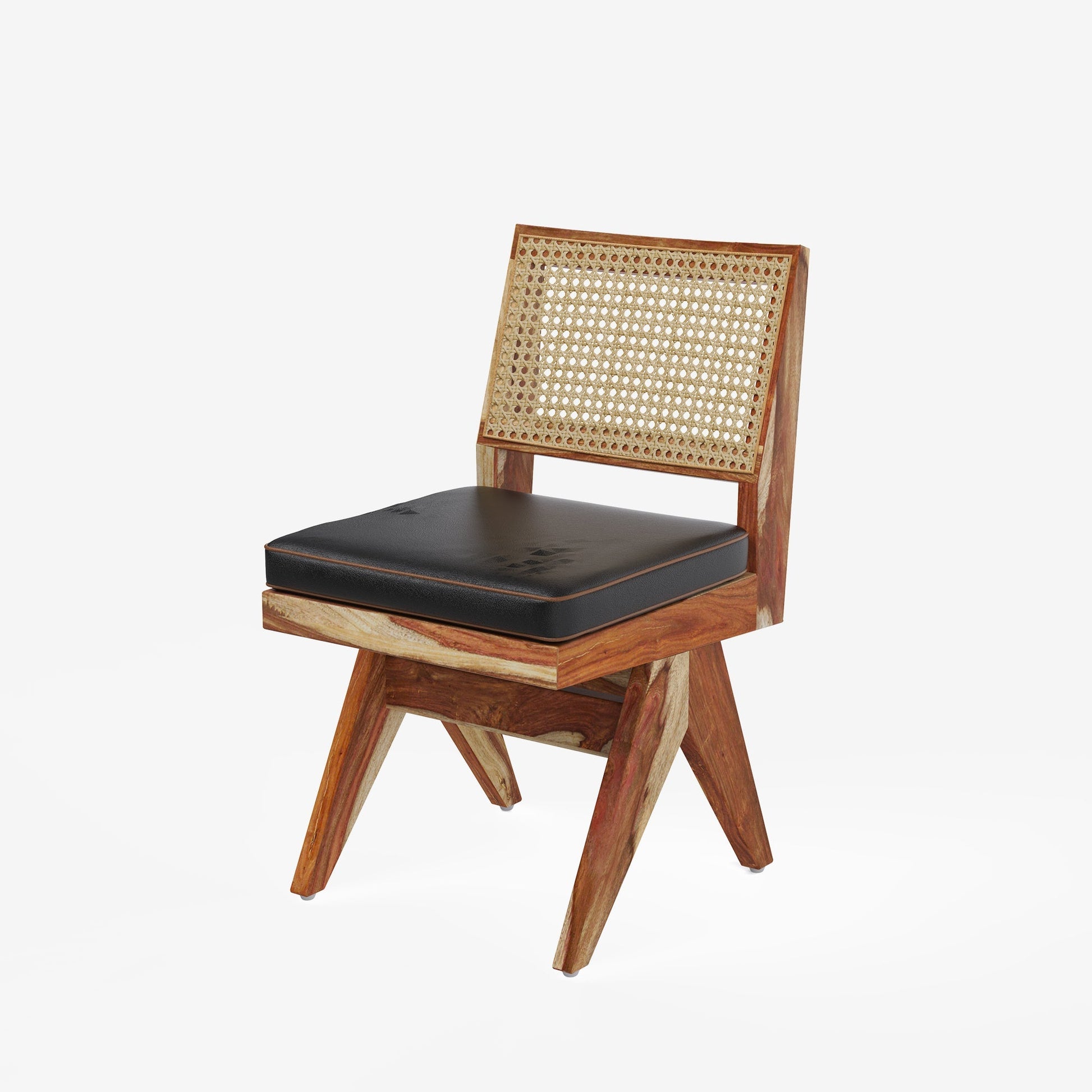 Comfortable seating: Armless Jean Rattan chairs with soft foaming and stylish vegan leather upholstery.