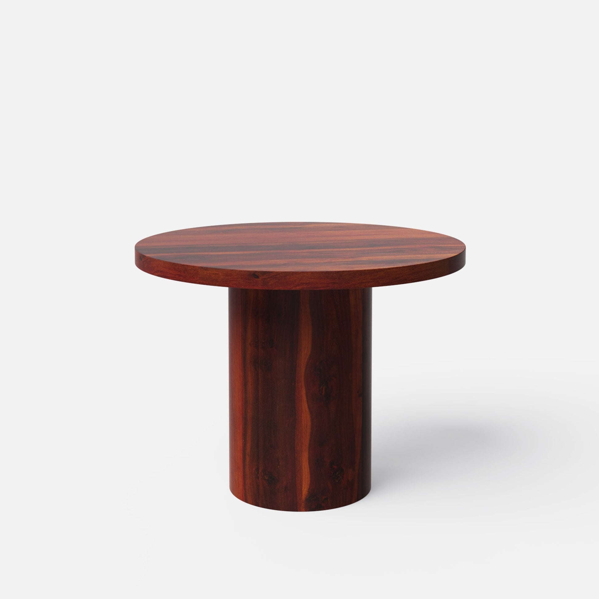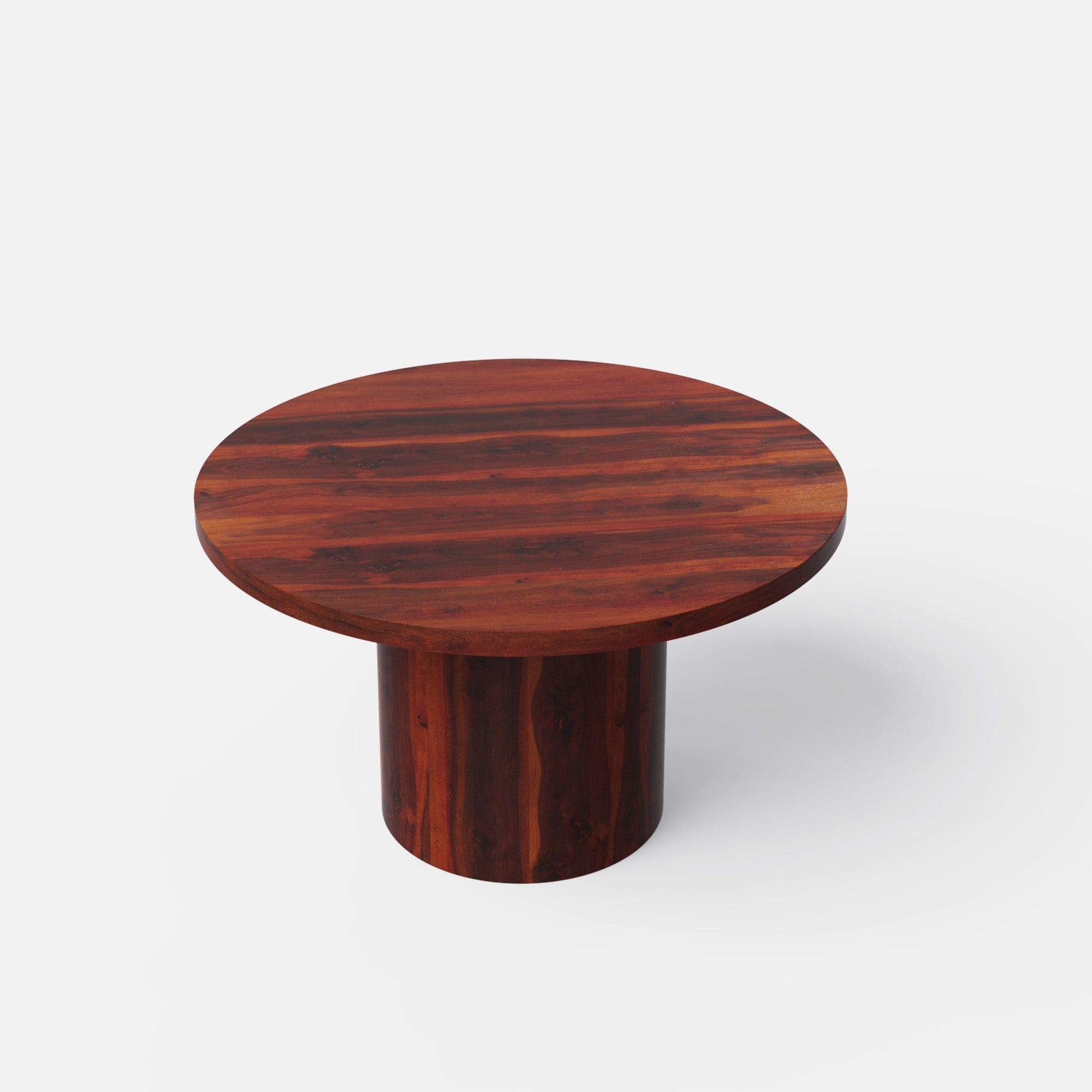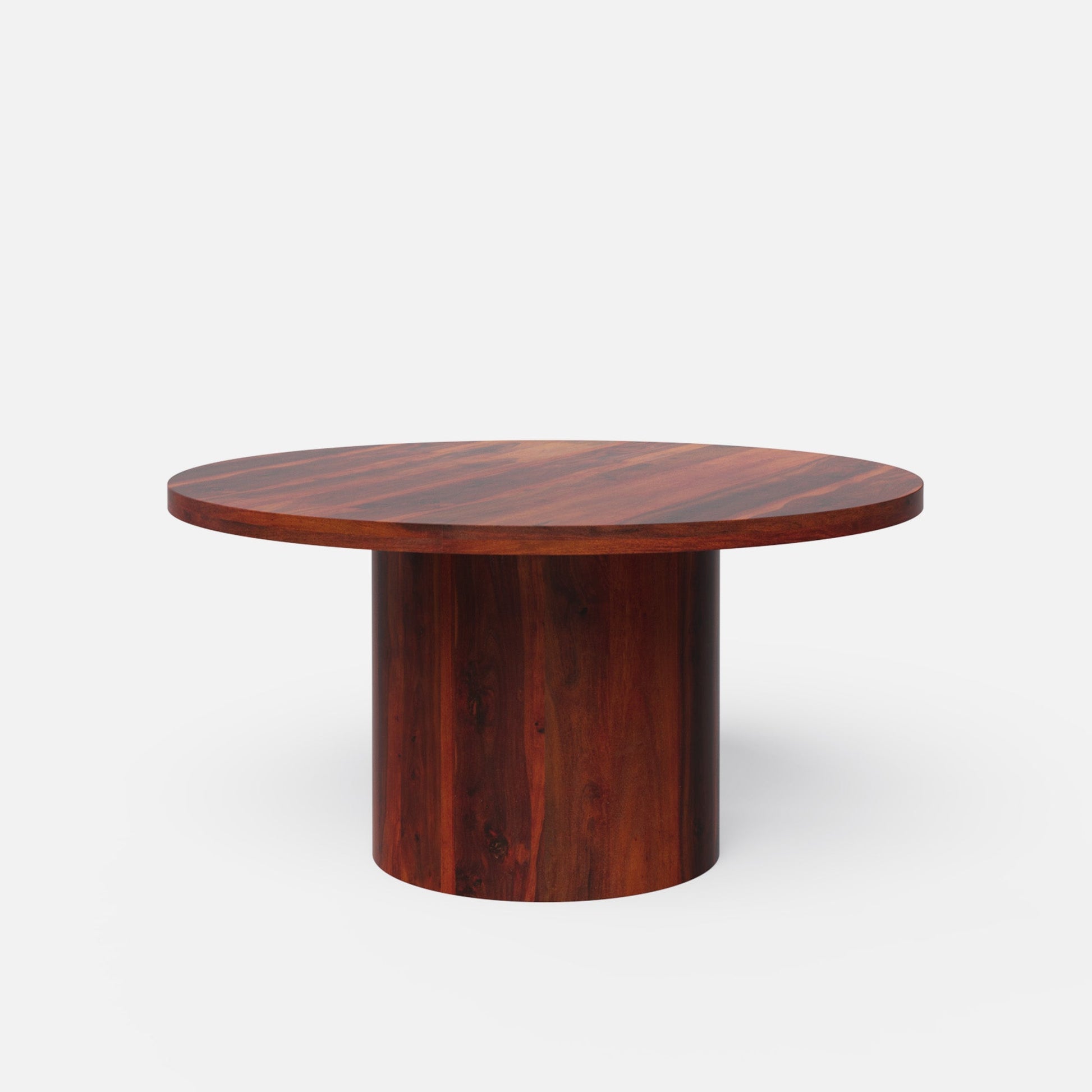 Round, pedestal-leg Sheesham wood table in Honey Walnut finish