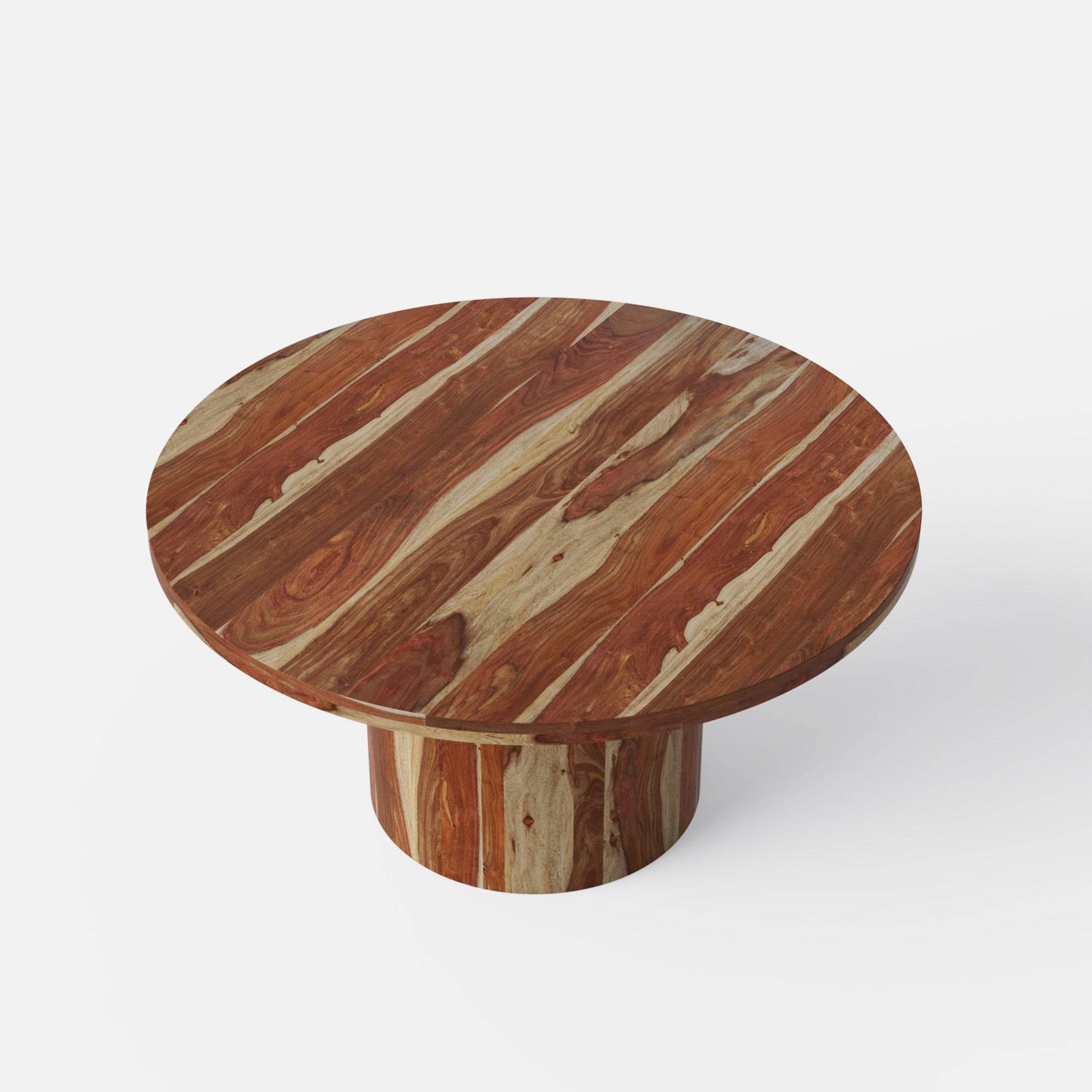 Introducing the "Luis Luxury Dining Table", inspired by minimalist design and available in 4 & 6 seater options. This handcrafted table features a sleek flat round top and a sturdy round base, all made from Sheesham wood with a natural polish finish. The clean lines and elegant silhouette make it a versatile piece that fits seamlessly into any dining space, offering both style and durability.