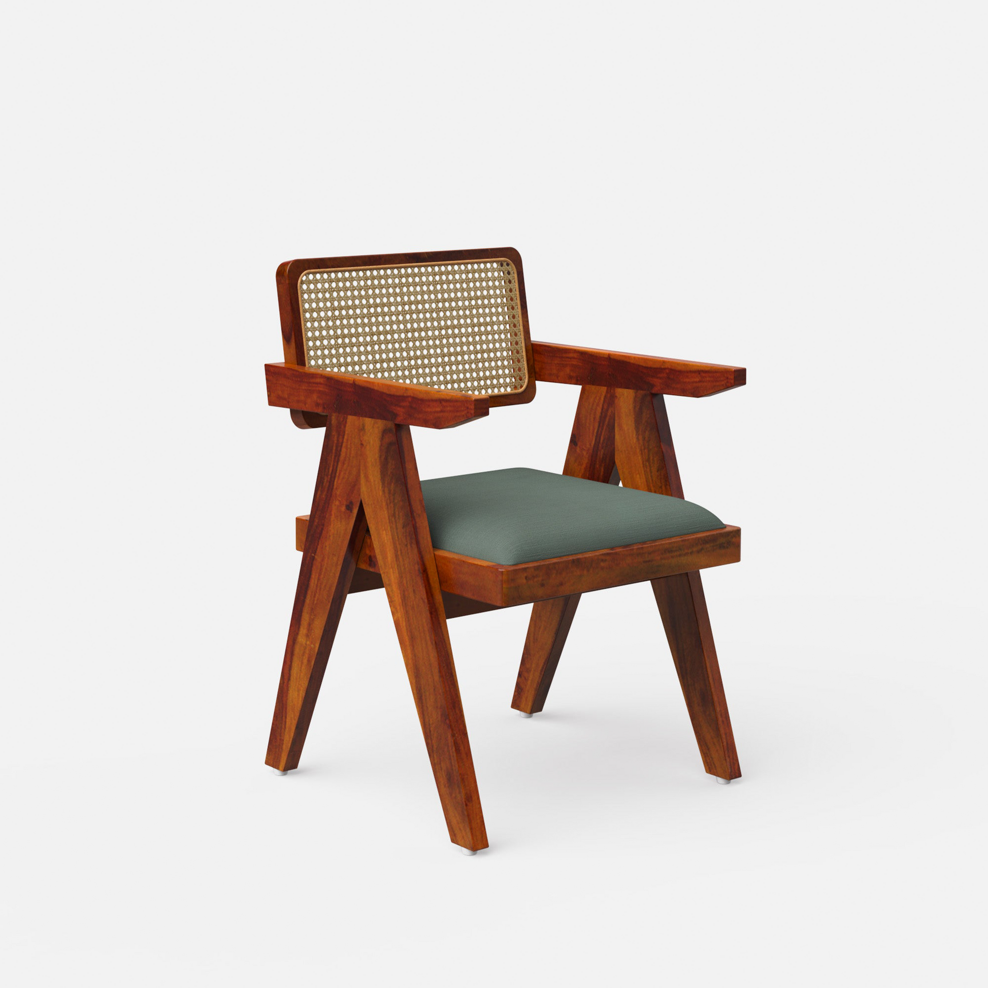 Pierre Jeanneret-inspired chairs with upholstered Slate Grey cotton seats