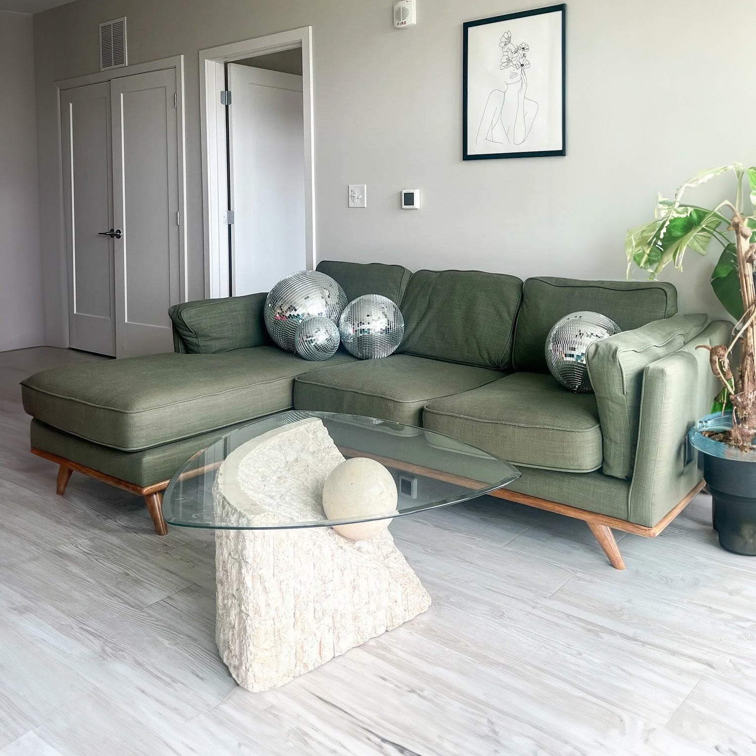 For those who love to stretch out in style, the Lumo L-Shaped Sectional offers ample space and luxurious comfort. Crafted with a solid teak wood frame and legs, this sectional is built to last. The plush down-feather cushions provide a soft yet supportive seating experience, perfect for lounging or hosting guests. Upholstered in our premium hybrid linen performance fabric, this sectional is stain-resistant and easy to clean, making it as practical as it is stylish. With loose seat and back cushions, along with two arm cushions, the Lumo L-Shaped Sectional strikes the perfect balance between comfort and structure. Assembly is quick and hassle-free, taking just 15 minutes.