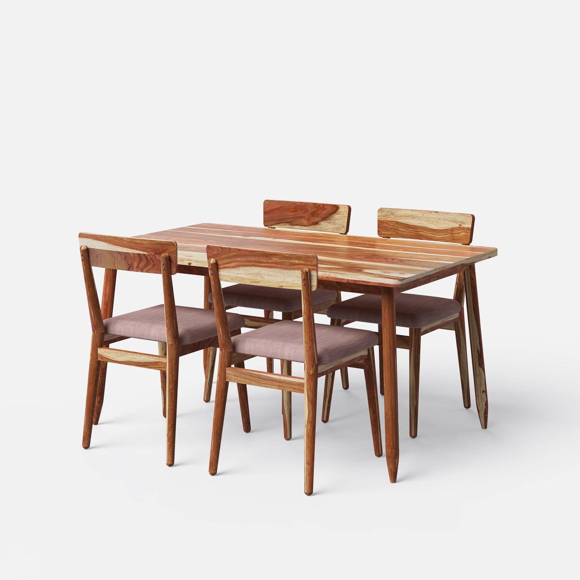 Introducing the Maltby Middleton Dining Set, where Scandinavian simplicity meets modern comfort. Crafted from Sheesham wood, the Maltby table in a Natural finish showcases sleek legs and a timeless Scandinavian-inspired design. Paired with Middleton chairs, also in Natural finish, upholstered in Caramel Cotton blend fabric, this set is available in 4 and 6-seater sizes. The armless chairs and table exude a timeless Scandinavian design, creating an inviting and stylish dining space.