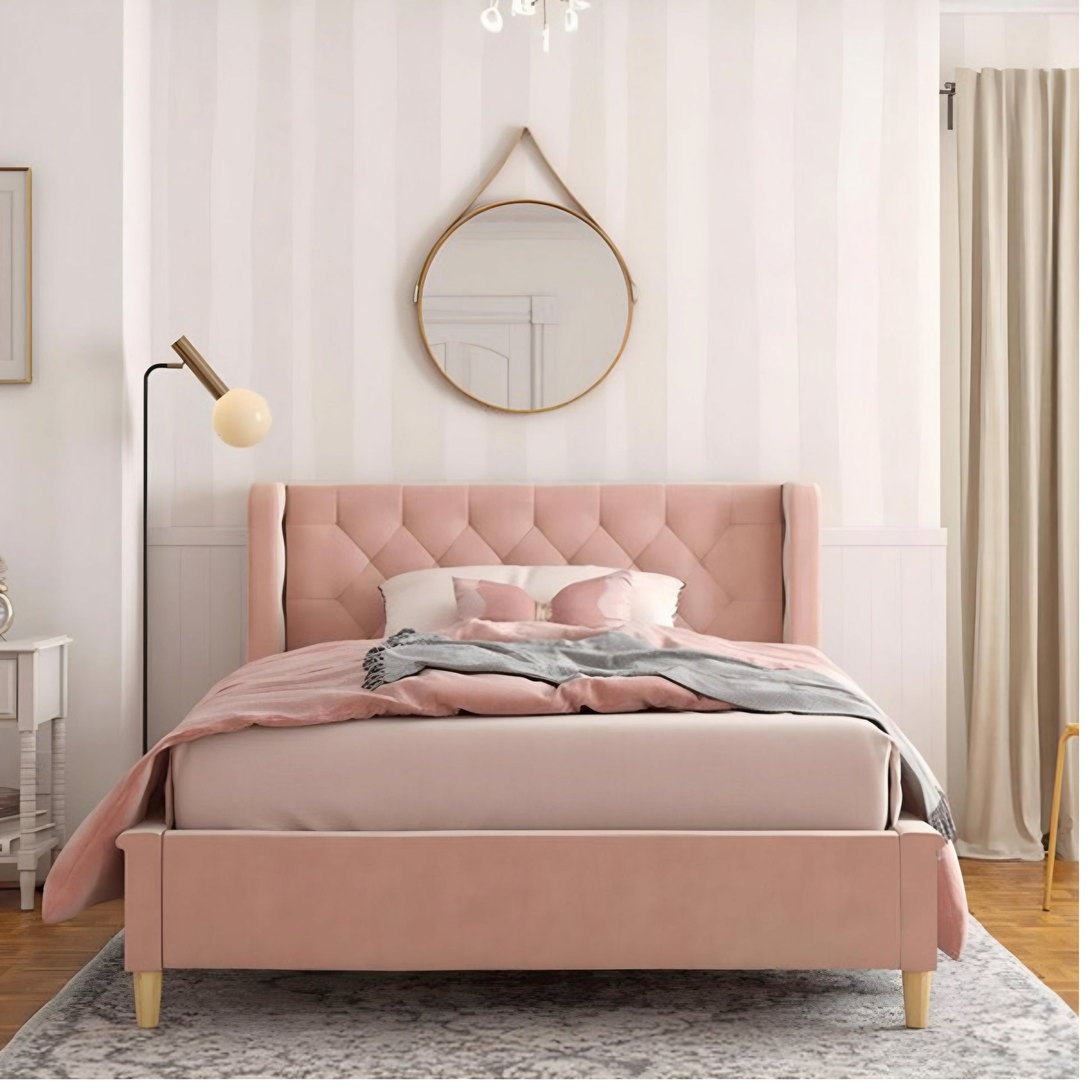 Our upholstered beds are beautifully covered with light padding and premium fabrics, delivering a structured appearance. Choose from materials like velvet, leatherette, suede, or plain fabric, often enhanced with quilted or streamlined headboards. The base frame utilizes neem plywood, known for its strength and flexibility, ensuring long-lasting durability and stability for your bedroom.