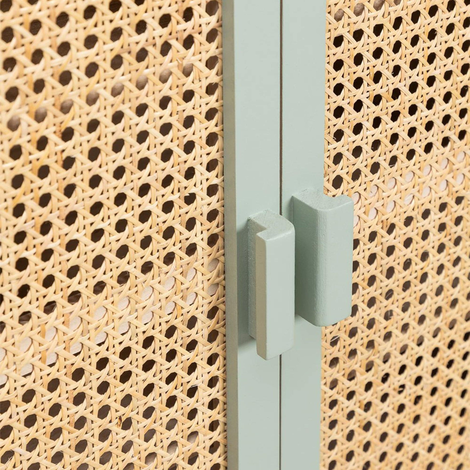 Materials used: Solid Mango Wood in Mint Green Duco Matte Finish, Natural Rattan Cane in Natural Finish