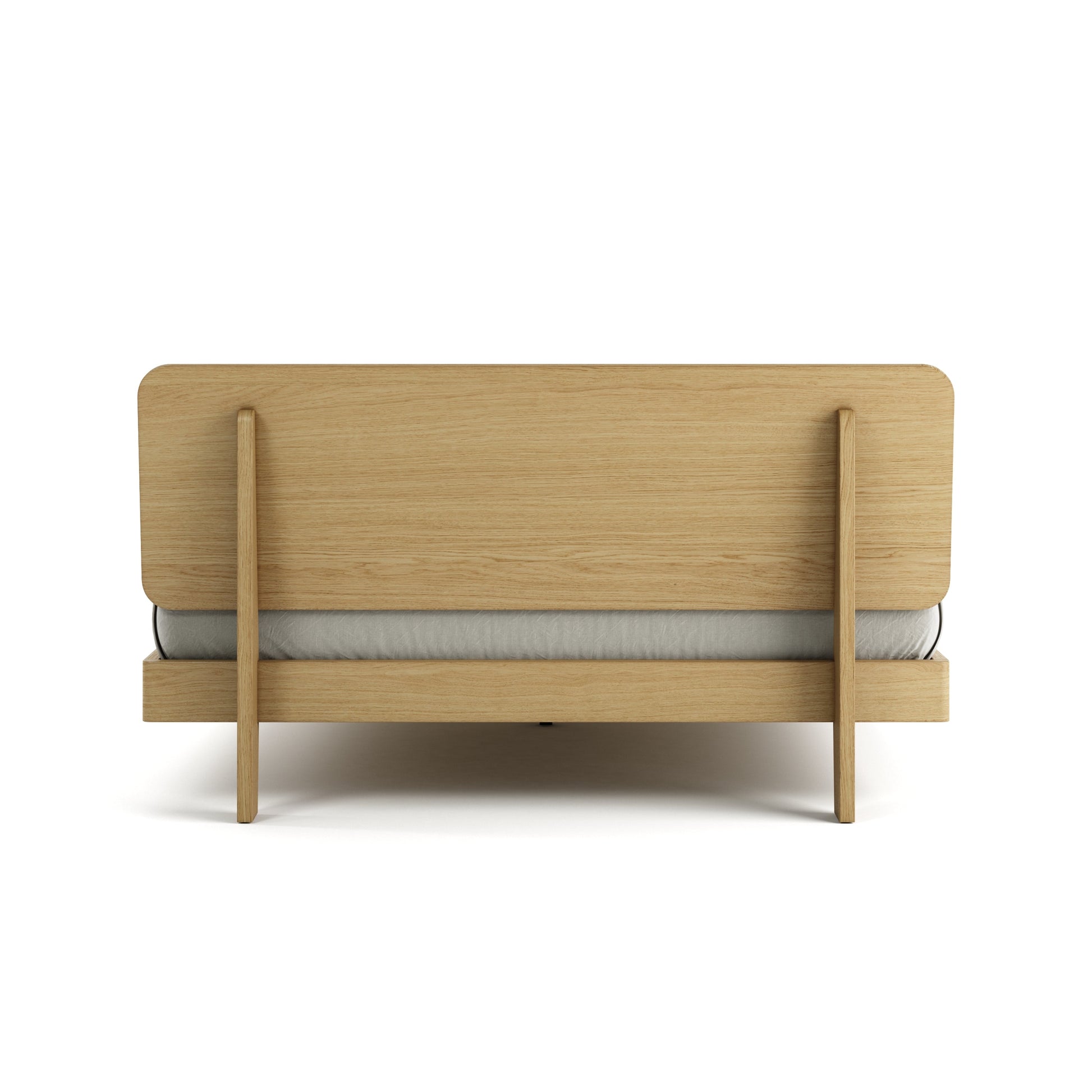 The Mowa Queen Bed with its signature slanted headboard, provides the same elegance and strength, scaled to fit perfectly into smaller spaces without sacrificing quality. Constructed from solid wood options of teak, walnut, and oak, this bed ensures a long-lasting, sturdy frame that can withstand years of use while maintaining its natural beauty. The slanted headboard offers comfort during moments of relaxation, making it a functional addition to any bedroom.