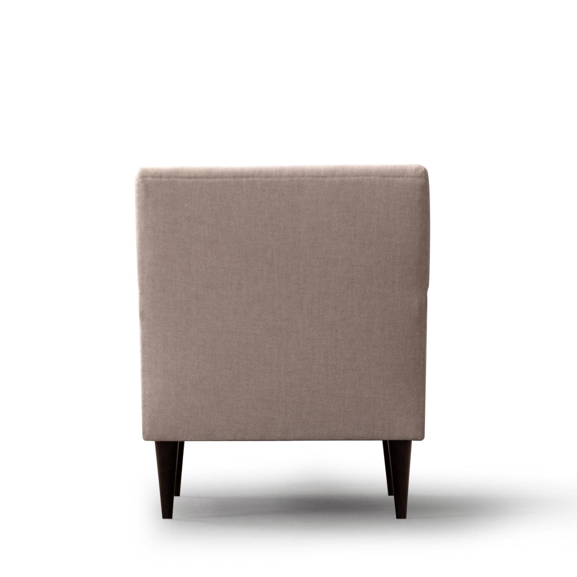 A modern classic handsomely outfitted in rich natural fabrics. From clean arms and gently sloped back to subtly tapered hardwood round legs, the plump tight back and deep seat cushion provide sink-in comfort.