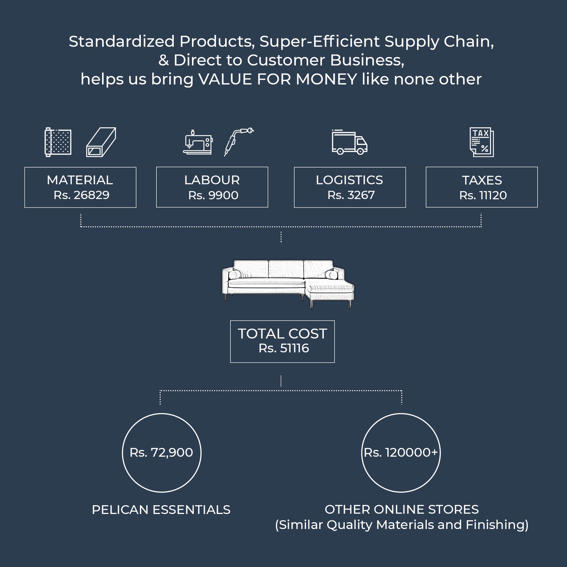Palo Sofa | L-Shaped Right Sectional with Chaise (8.25 feet length) | Removable Fabrics