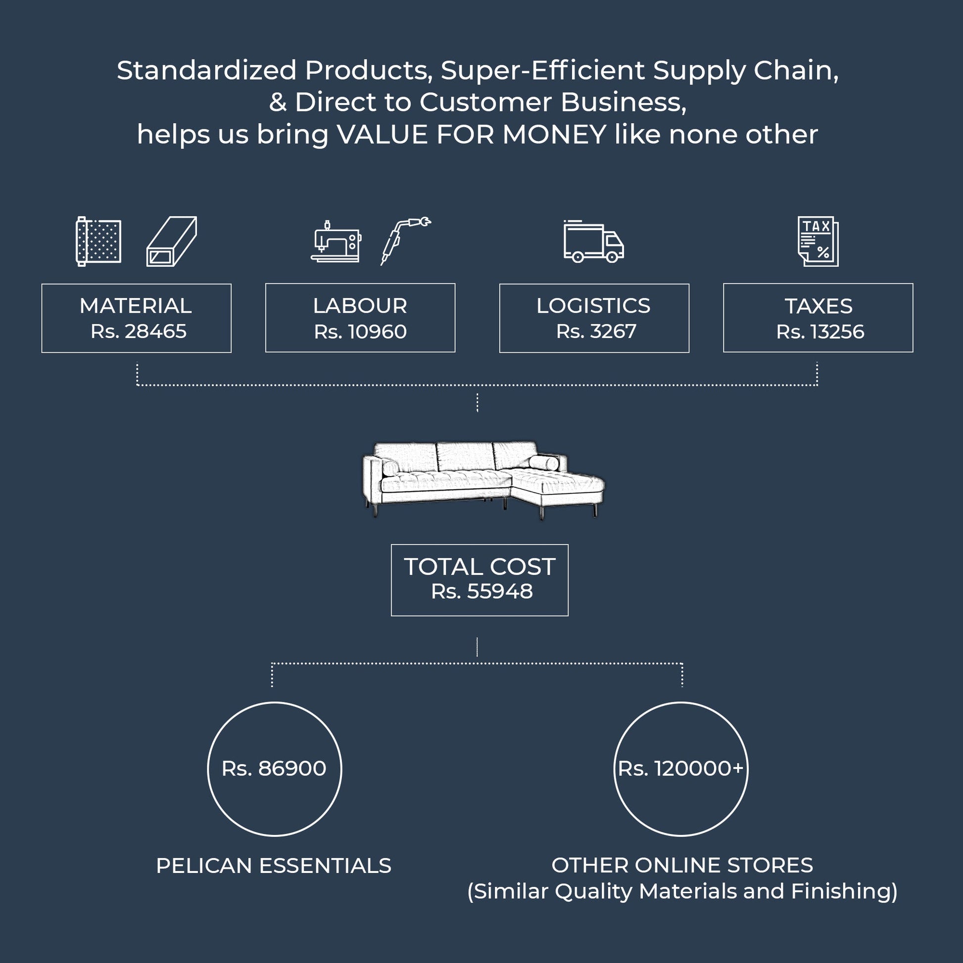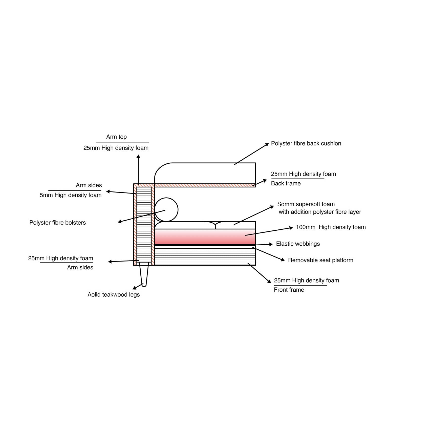 - Tufted seats - High-density foam with Polyester filling