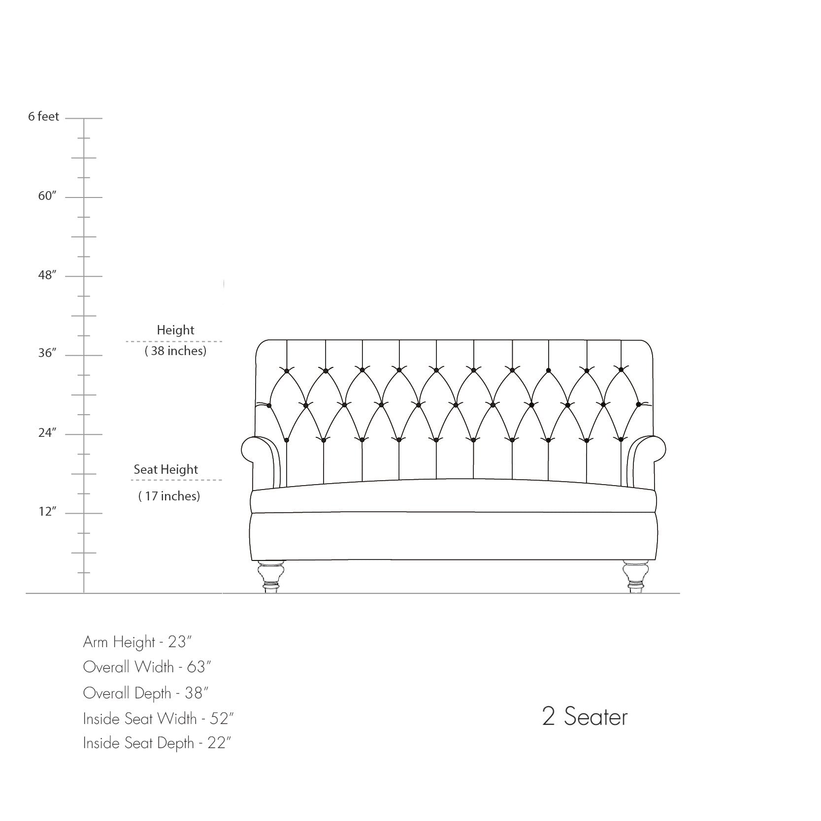 - Tapered back with deep hand tufting.