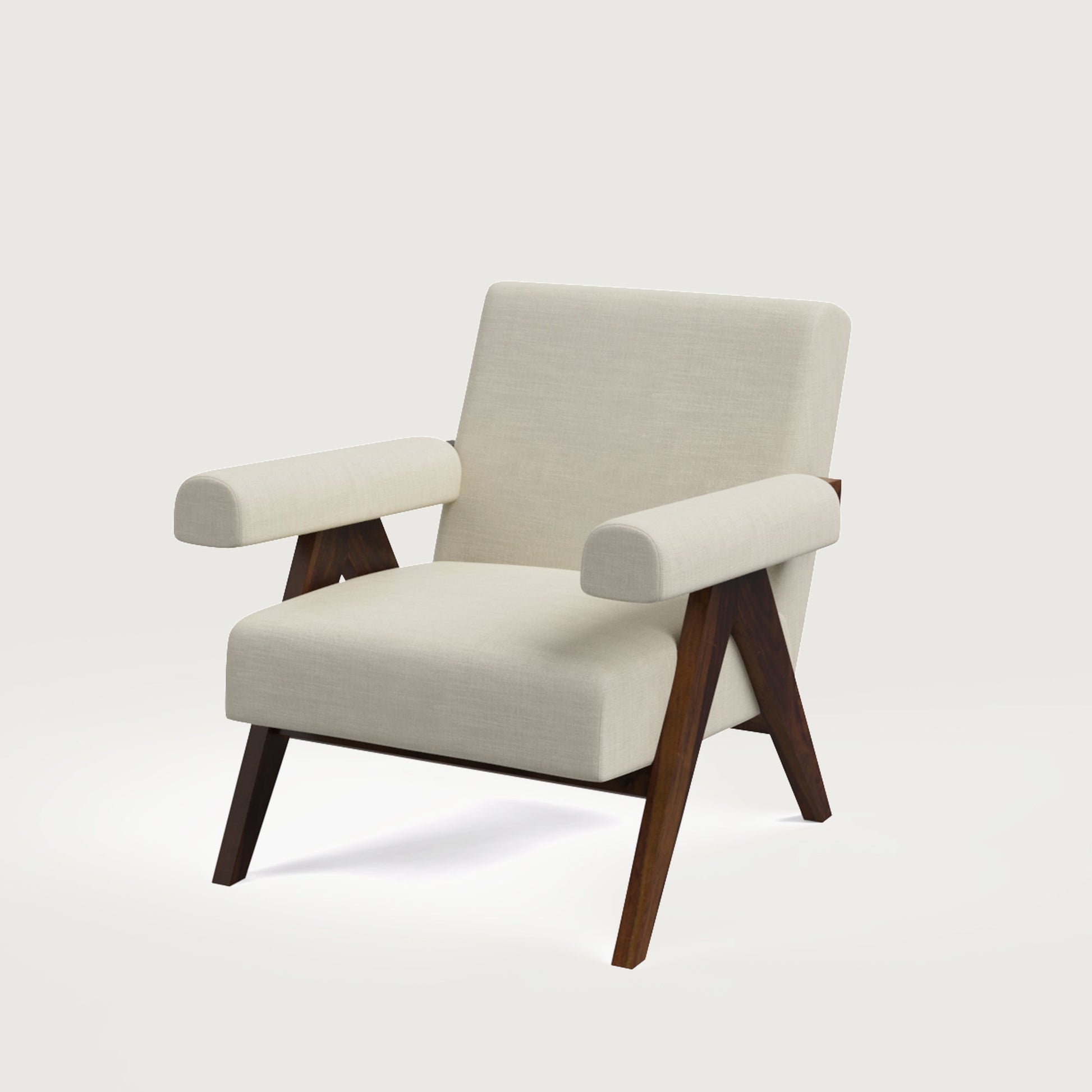 Pierre Accent Chair - Walnut in Sheesham and Almond Latte Luxury Fabric
