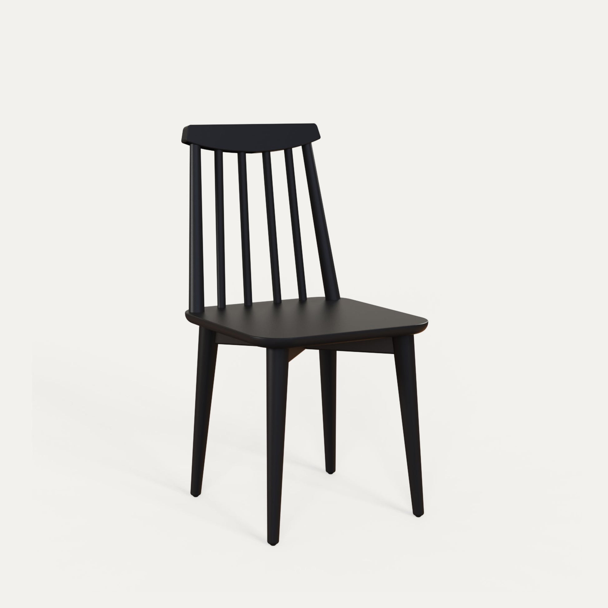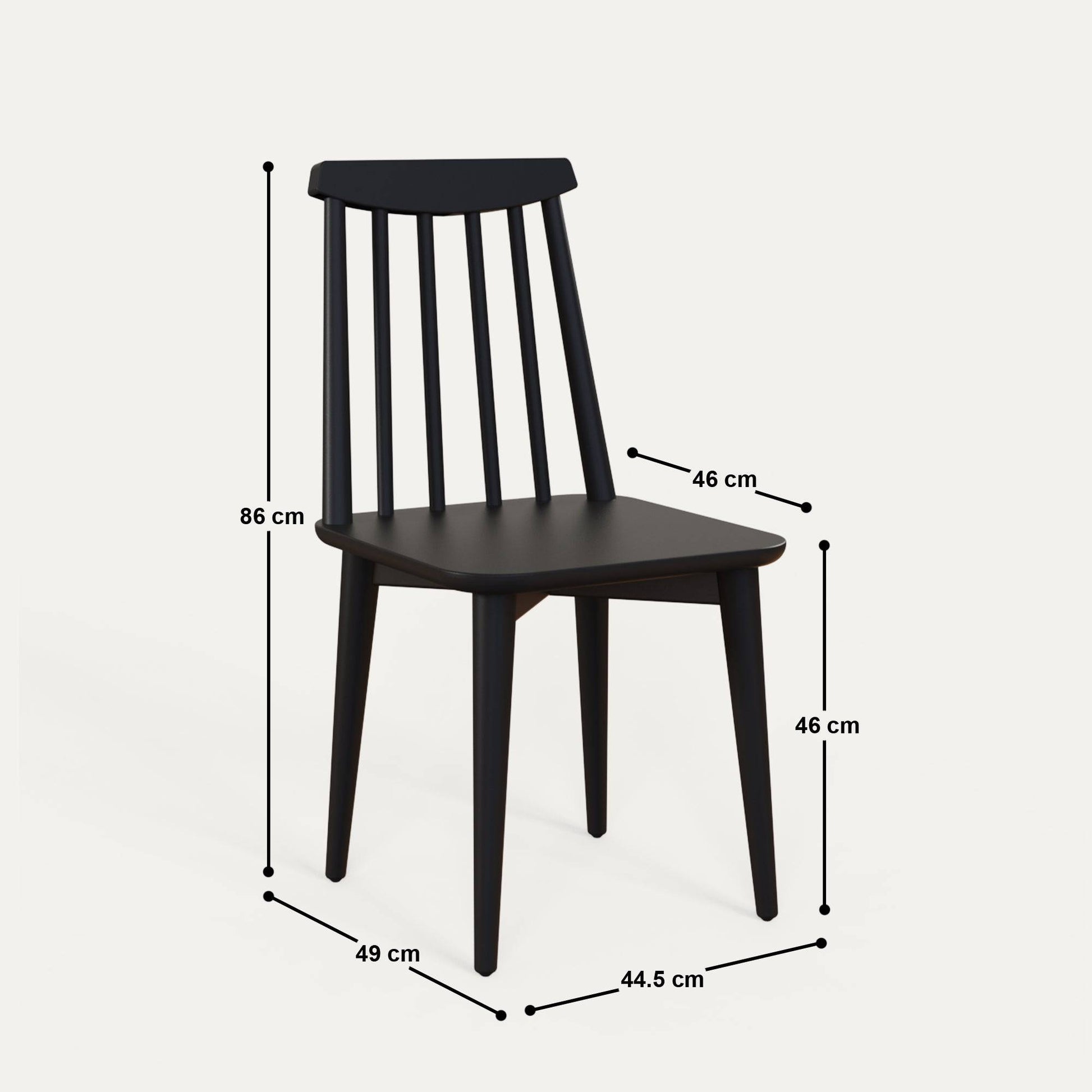 Introducing the Polly Chair Black, a perfect blend of superior built quality and classic design. This dining chair features a Windsor-style chair design, showcasing timeless elegance. Crafted from Sheesham wood with a sleek black matte finish, it exudes durability and sophistication. The standout features are the delicately turned spindle backs and sculpted wooden seats, adding a touch of artistic craftsmanship. With straight legs that splay out at an angle, the Polly Chair Black offers both stability and a unique aesthetic.