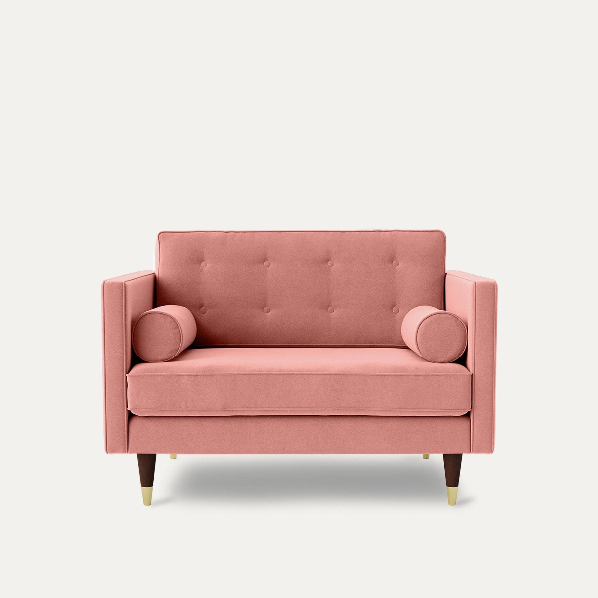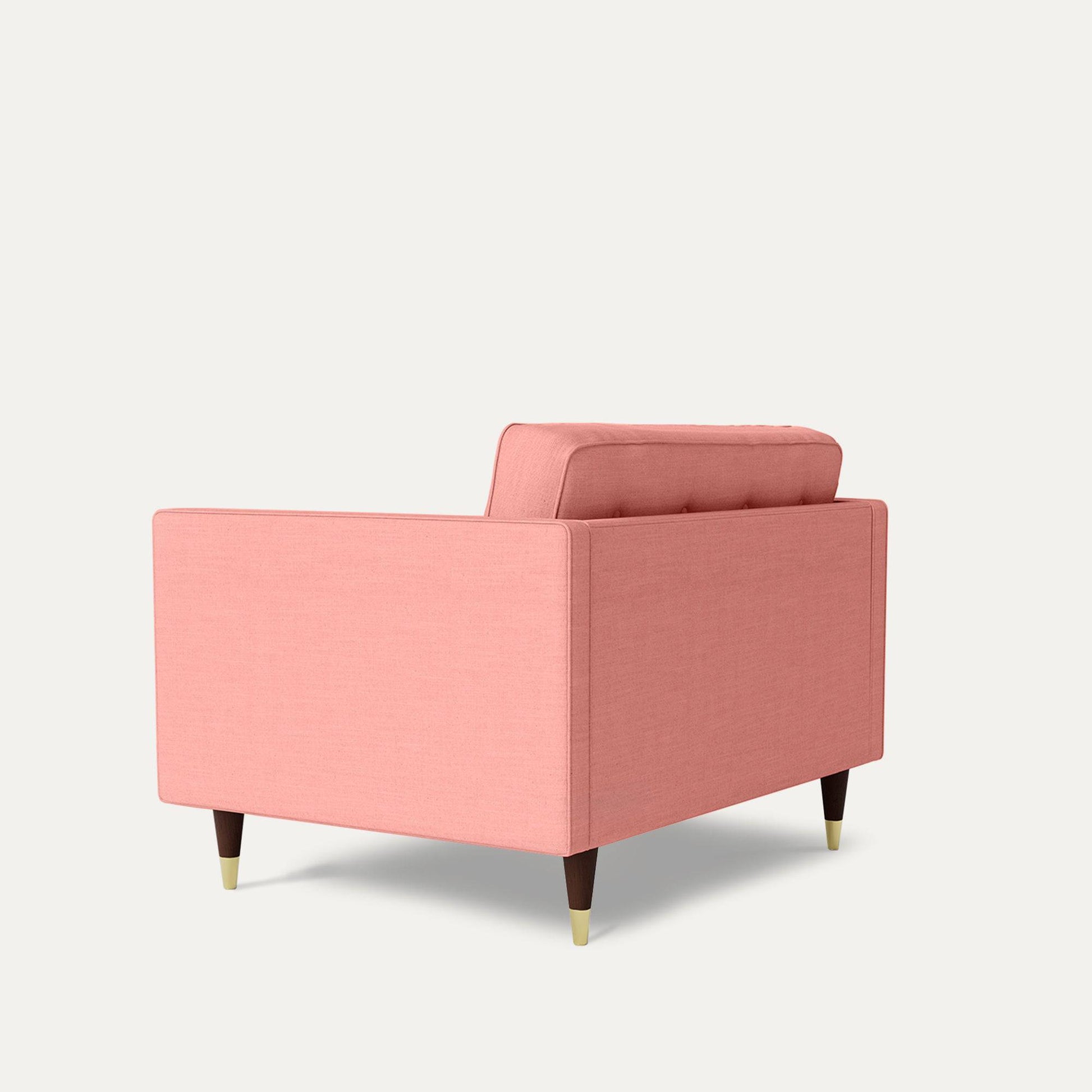 - Stylish wooden legs with brass caps bring an element of luxury to the design.