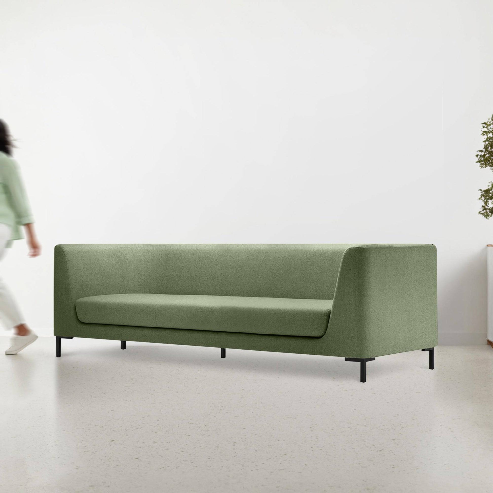 Introducing the Seth 4-Seater Sofa, a bestseller that combines sleek design and spacious comfort. Measuring 90.5 inches, it offers ample seating for four. Seth features clean lines, a streamlined shape, and a boxy style, creating a modern and inviting look. Supported by stylish T-shaped metal legs, this sofa seamlessly blends aesthetics with stability. Dressed in a vibrant seaweed green blend fabric, it's a statement piece that adds a burst of color and contemporary charm to your living space.