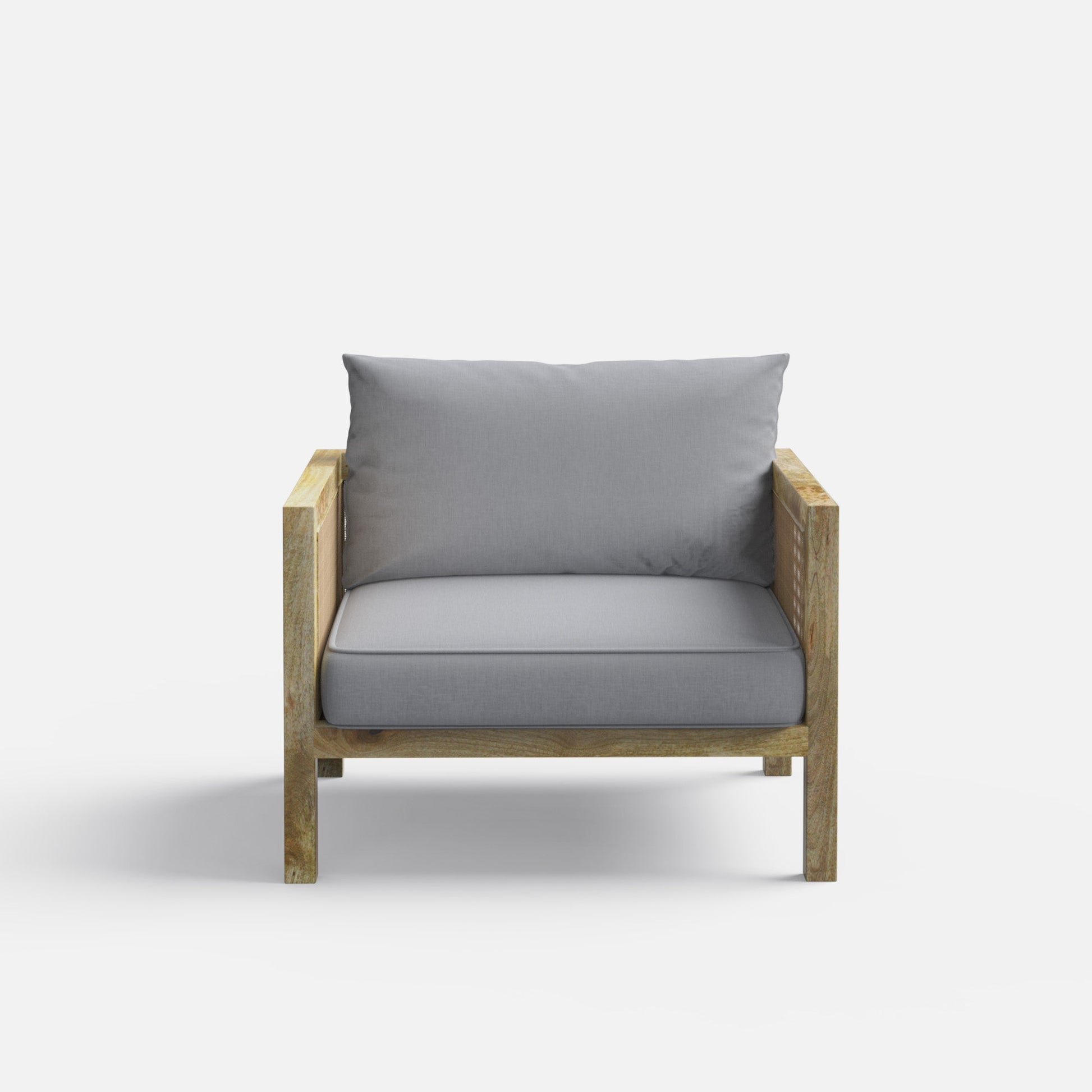 - Solid mango wood frame in Natural polish adds durability and sophistication.